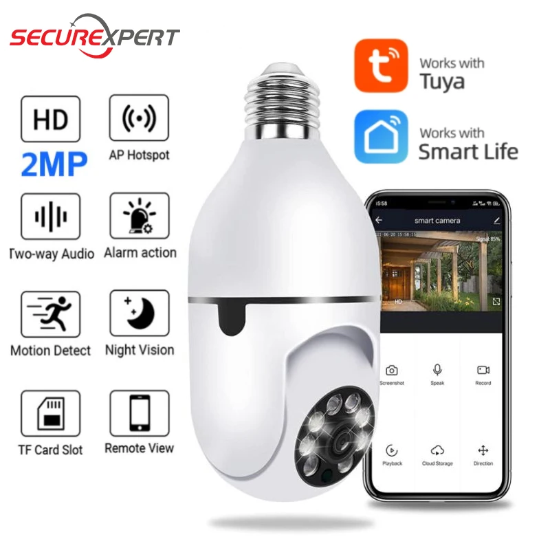 Tuya 1080P Bulb Camera Wifi 360 Panoramic Home Surveillance Full HD Camera Night Vision Motion Detection Two Ways Audio Lamp Camera