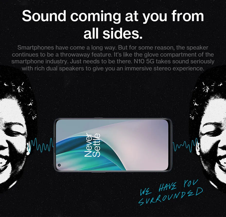 5G N10 воспринимает звук серьезно. Двойные динамики создают захватывающий стереозвук,