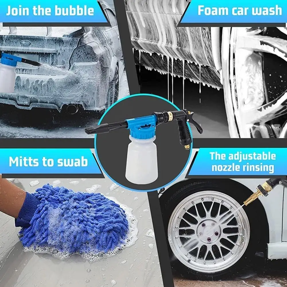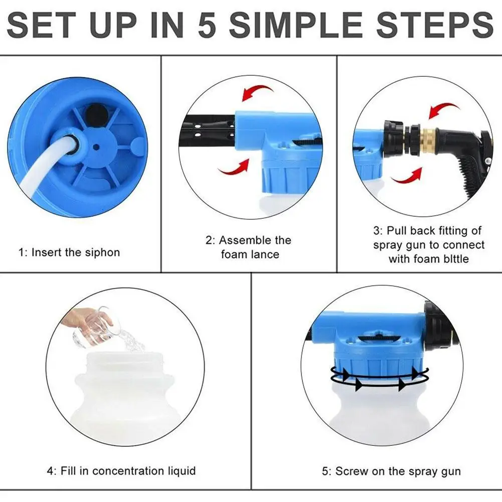 4. Многофункциональный автомоечный распылитель: 2 в 1 Функция, поддержка пены-распылителя или распыления воды. Простой в использовании, добавьте немного мыла и воды в контейнер и подключите садовый шланг. Пенящаяся палочка будет производить липкую пену. Стирка в машине занимает всего несколько минут. Этот автомоечный пистолет не только является идеальным способом для поддержания идеального блеска во время мытья автомобиля, но также может использоваться на мотоциклах, велосипедах, квадроциклах, UTV, автомобилях, полу, окнах, подъездных дорожках, крышах, сайдинг или полив цветов и растений.