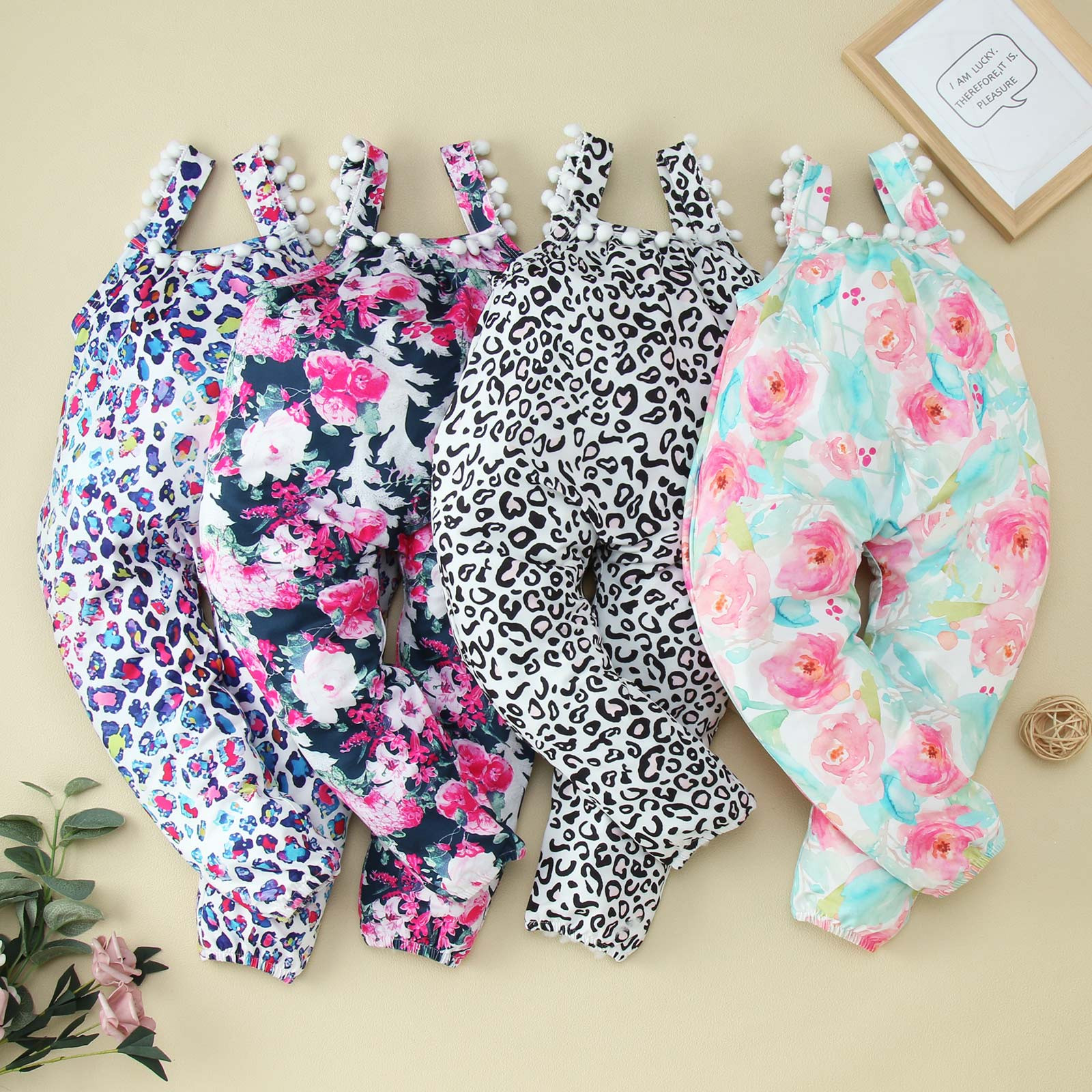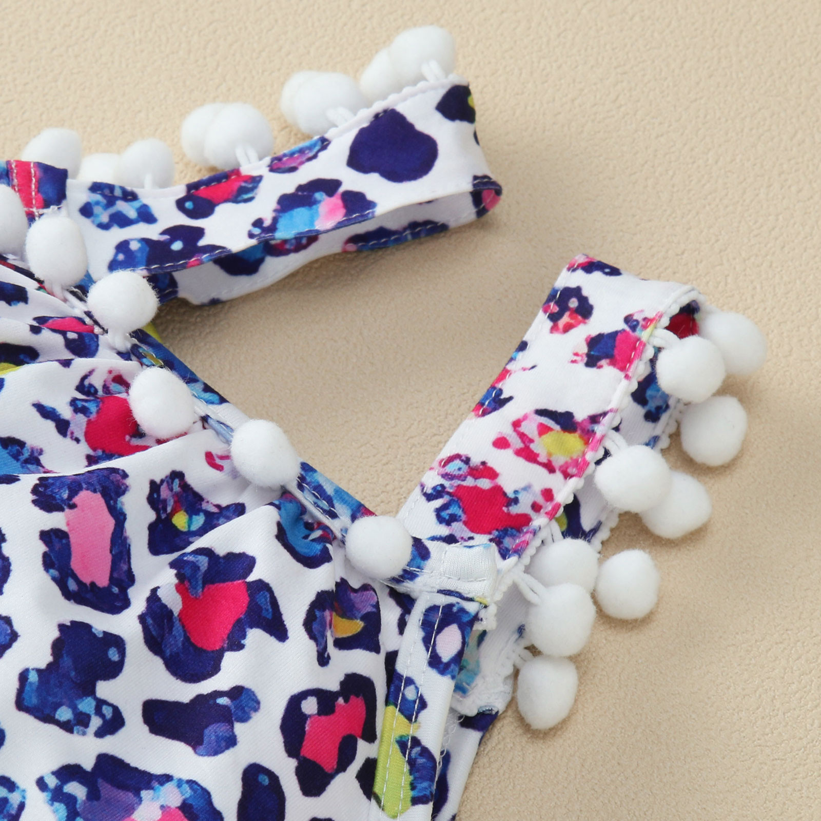 Для малышей, для маленьких девочек; Детская одежда с цветочным рисунком; Комбинезон из одного предмета ремешок с кисточками Детский комбинезон с принтом леопарда Летний комбинезон одежда От 1 до 6 лет