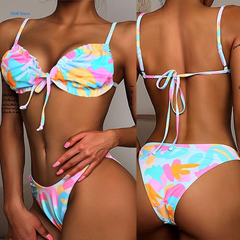 Бикини с регулируемыми завязками и быстросохнущей тканью идеально подходит для отдыха на пляже и т. д.