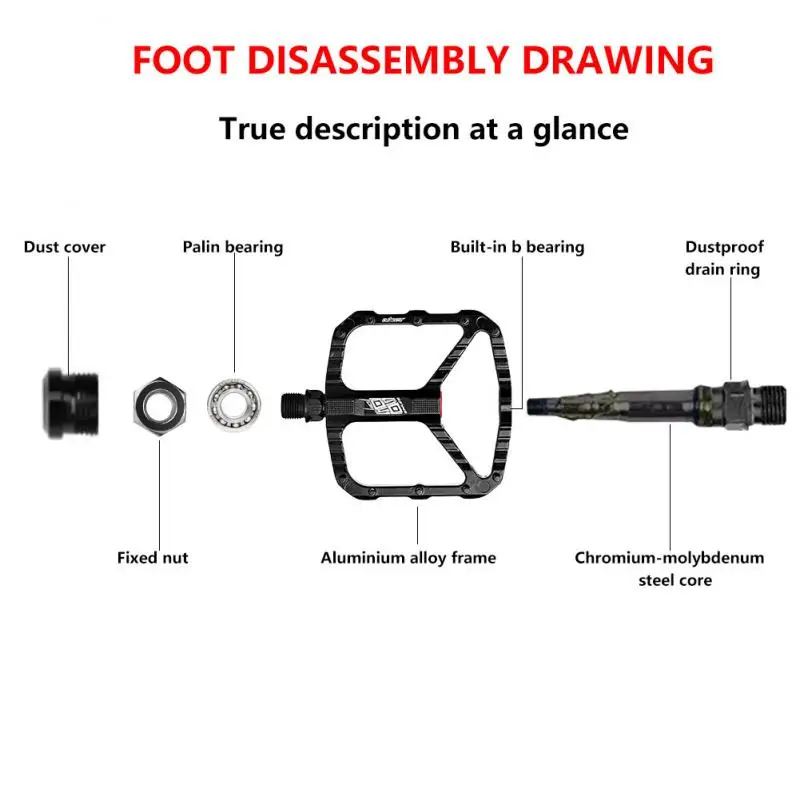 1. Поверхность педалей: Широкая поверхность протектора, мощная производительность педалей, большая площадь контакта, кинетическая энергия педалей шагов преобразуется в кинетическую энергию велосипеда, И поверхность краски матовая черная.