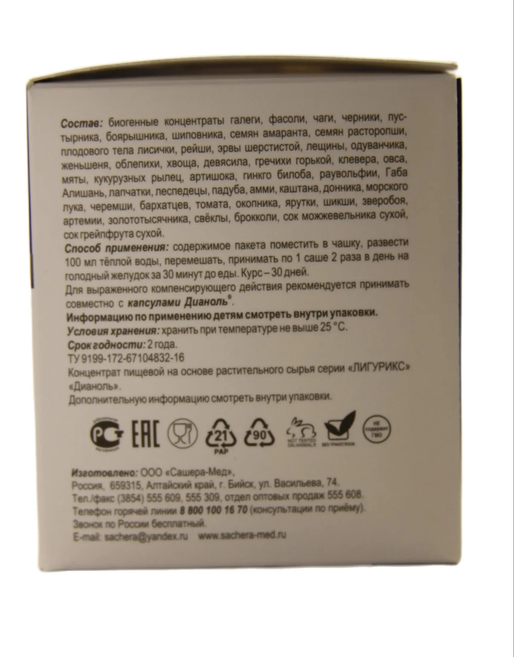 Дианоль® – биогенный порошок в саше на основе концентратов активных структур растений и природных компонентов, направленный на регуляцию обменных процессов при резистентности клеток к инсулину, нарушении функций и состояния бета-клеток поджелудочной железы, сопутствующих нарушениях со стороны сердечно-сосудистой, нервной, иммунной, костно-мышечной, эндокринной, бронхолёгочной, пищеварительной систем, зрения, кожи.