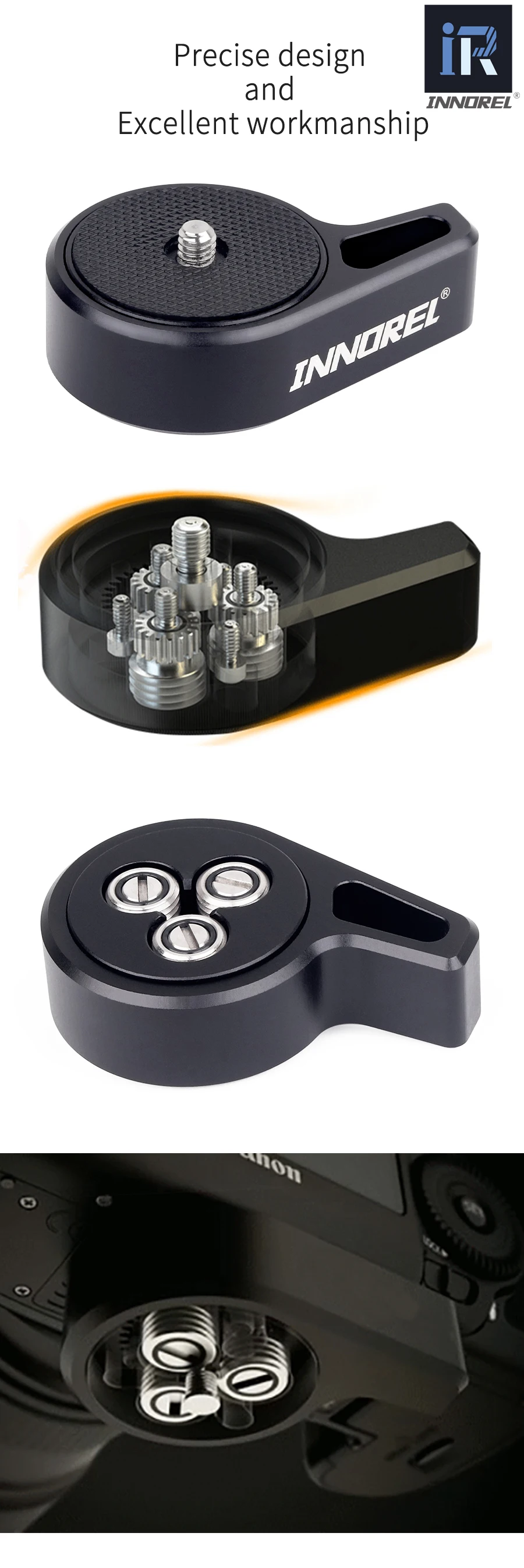 【Быстрая регулировка работы】 Это удобно для быстрого крепления штатива панорамирования/наклона, видео панорамирования/наклона и DSLR стабилизатора, который занимает всего 5 секунд.