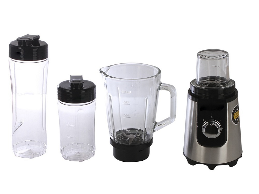 Благодаря особой системе крепления ножей к моторному блоку прибора, блендер может измельчать и смешивать продукты в нескольких емкостях: в кувшине, малом и большом дорожных стаканах, мини-измельчителе.