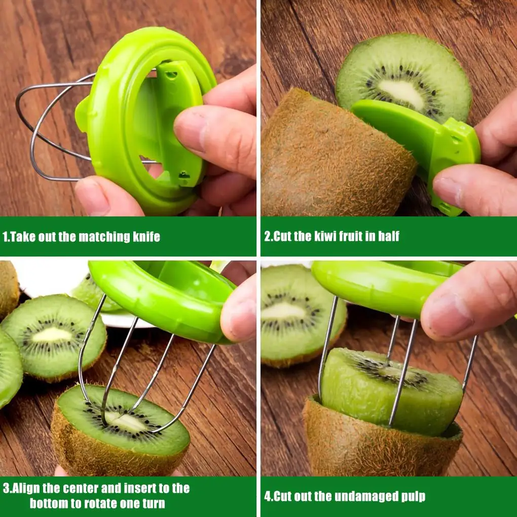 Этот вид овощечистки содержит слайсер и инструмент для резки, вы можете легко нарезать киви, экономя время и силу для вас.