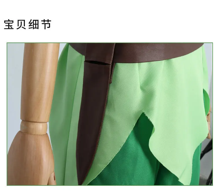 Детский карнавальный костюм Питера Пэна для взрослых; Вечерние костюмы на Хэллоуин; Комплект из зеленой рубашки и штанов