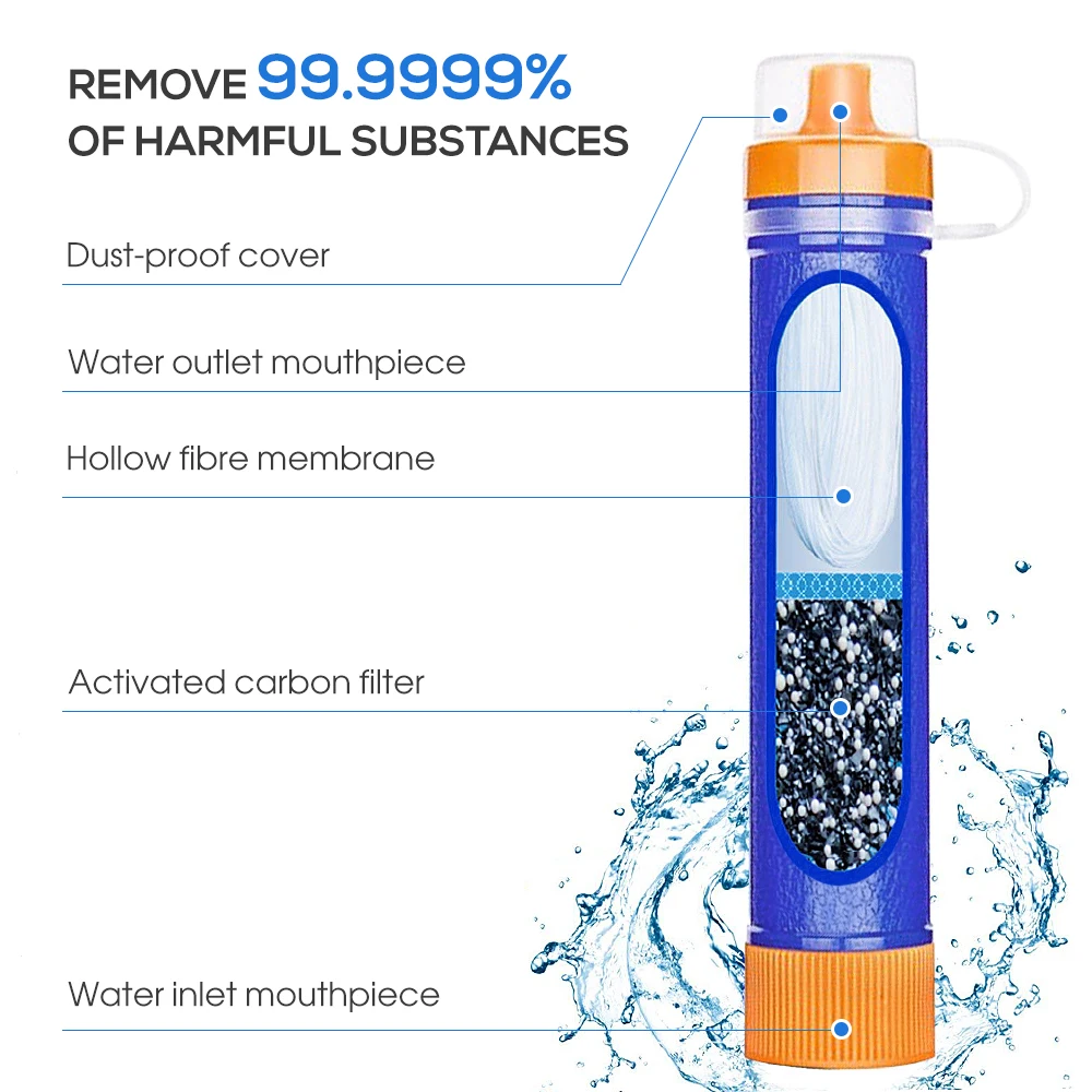 Мини-и легкая фильтрация соломы обеспечивает до 1500 литров (396 галлонов) питьевой воды. 3-этапная система фильтрации, включающая можно удалить 99.999% вредных веществ (загрязнение окружающей среды, без запаха, хлор и Органические химические вещества и т. д.) и улучшите вкус. Обеспечение наиболее безопасной воды в наихудших условиях. Идеально подходит для отдыха, Походов, Кемпинга. Это также ваш хороший компаньон для скаутинга, внутренних и международных путешествий, обеспечения готовности к чрезвычайным ситуациях.
