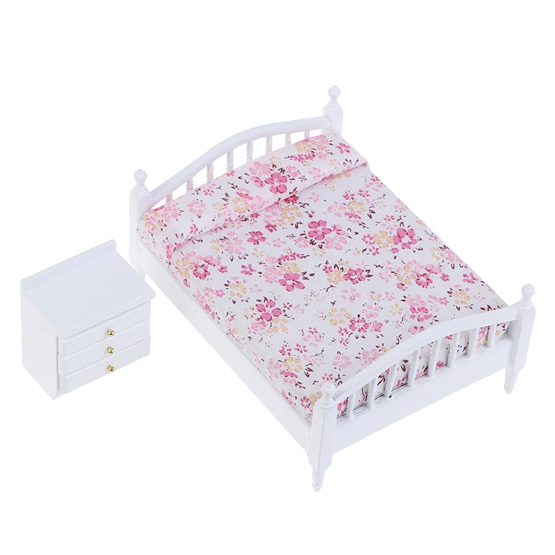 1:12 кукольный домик миниатюрные куклы мебель двуспальная кровать, прикроватный столик модель