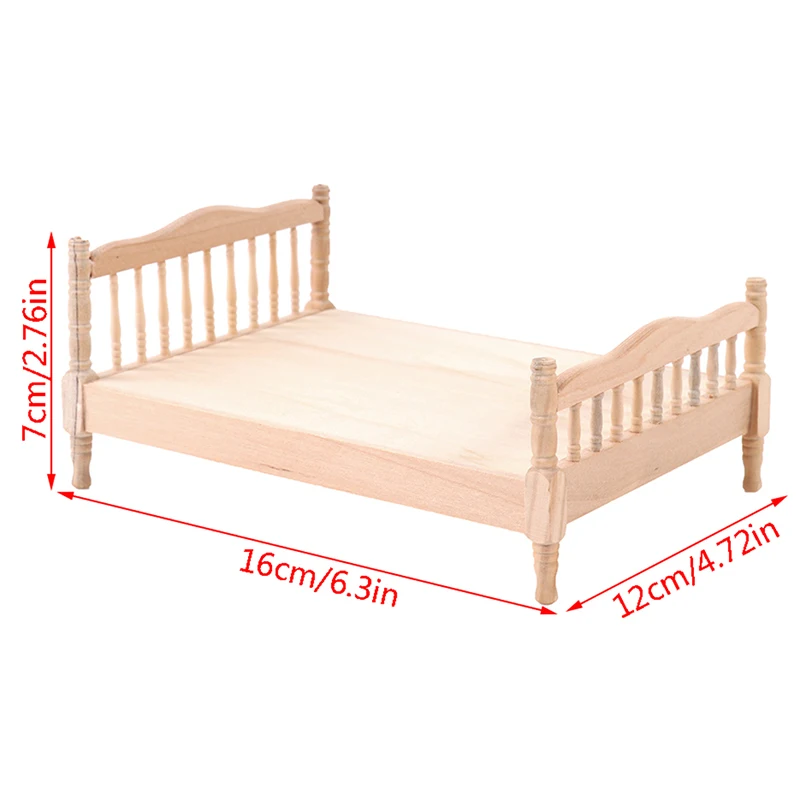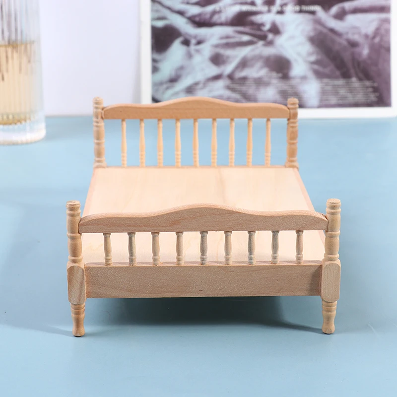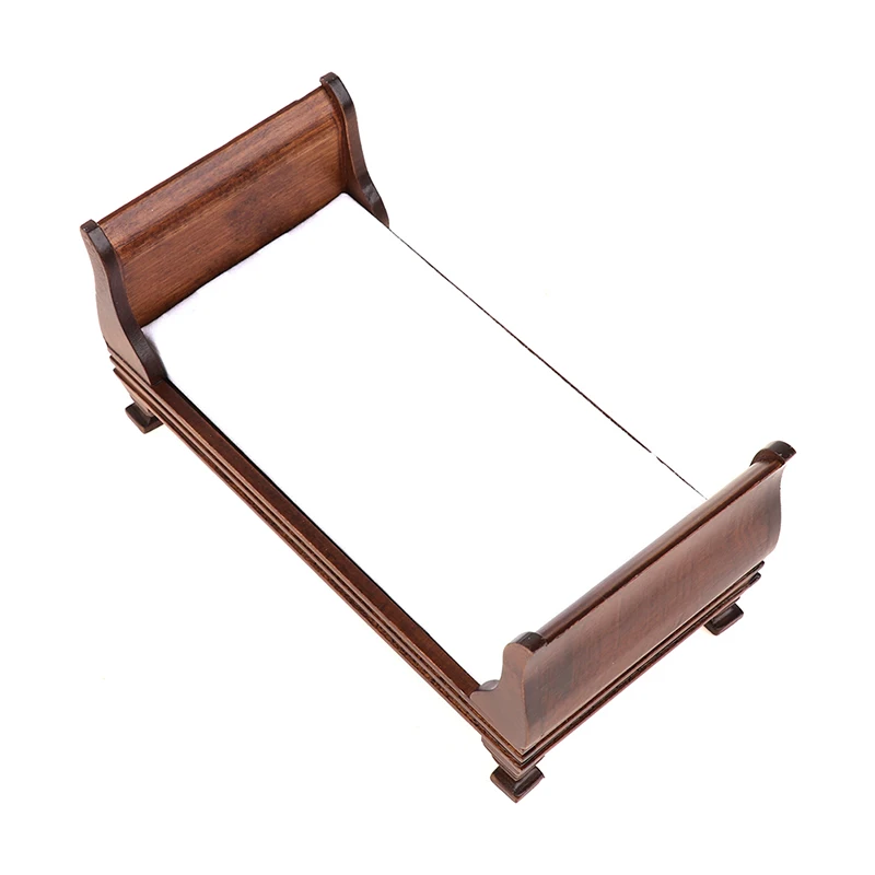 Односпальная деревянная кровать, маленькая и изысканная, подходит для украшения кукольного дома.
