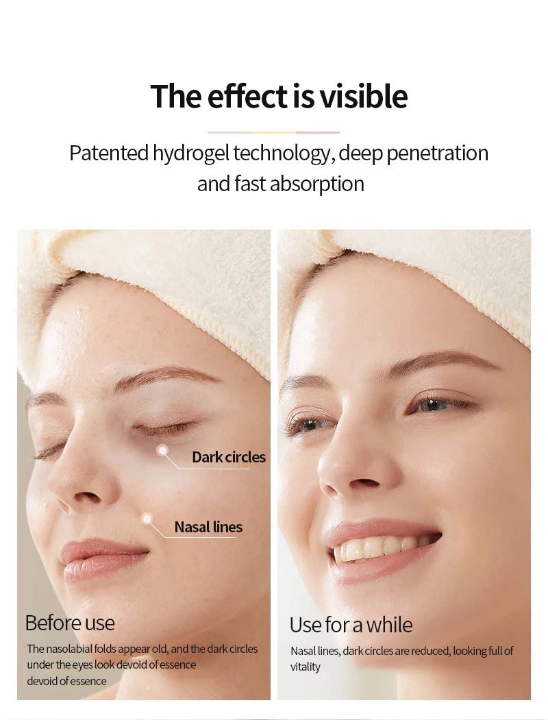 Характеристики продукта: Эффективность: удаление темных кругов, заполнение тонких линий, носогубные складки, рожки для глаз, уменьшение морщин, восстановление, подтягивание кожи, омолаживание, выцветание тонких линий, увлажнение.