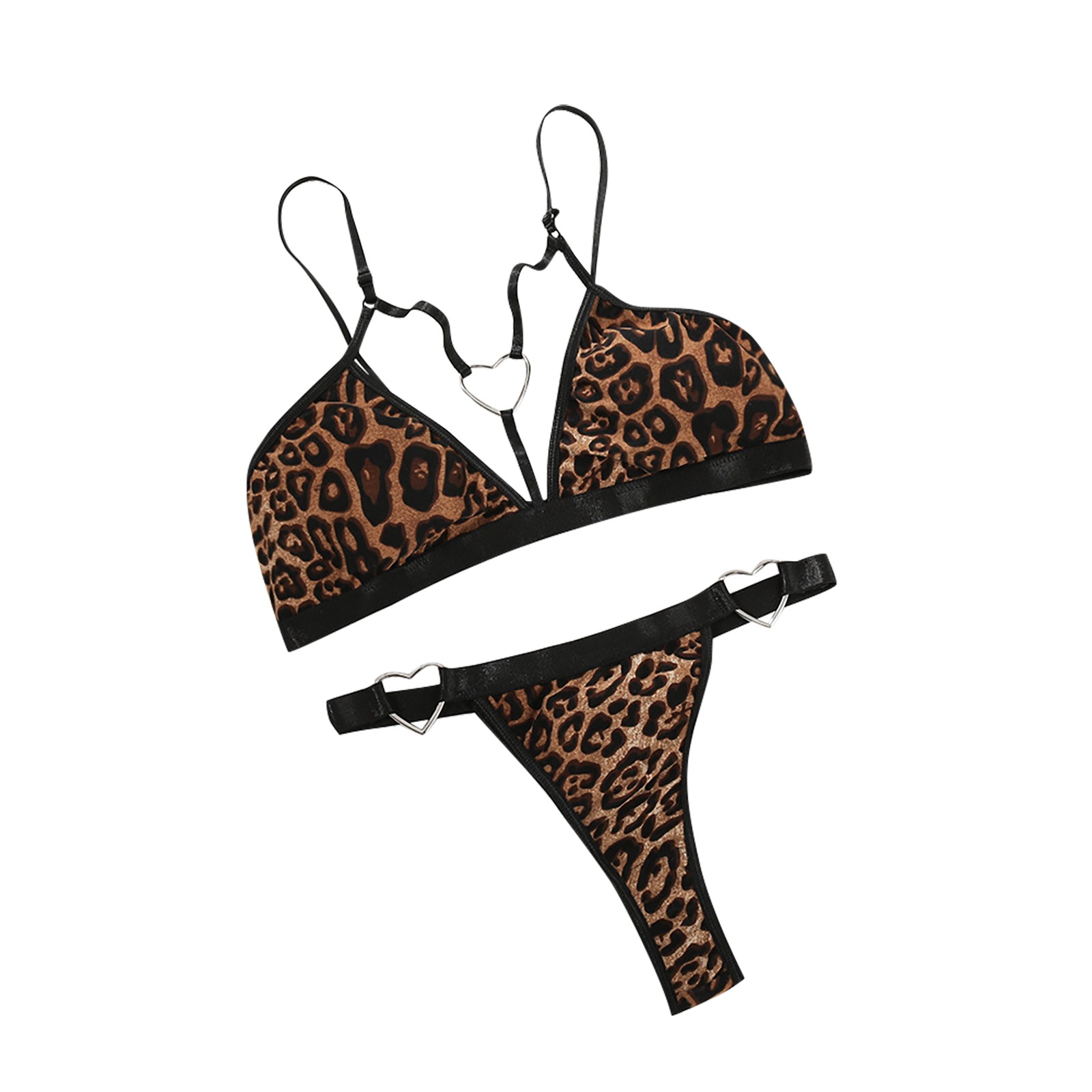 Женское сексуальное нижнее белье с леопардовым принтом и перекрестным ремешком в виде сердца, сексуальный костюм из двух предметов
