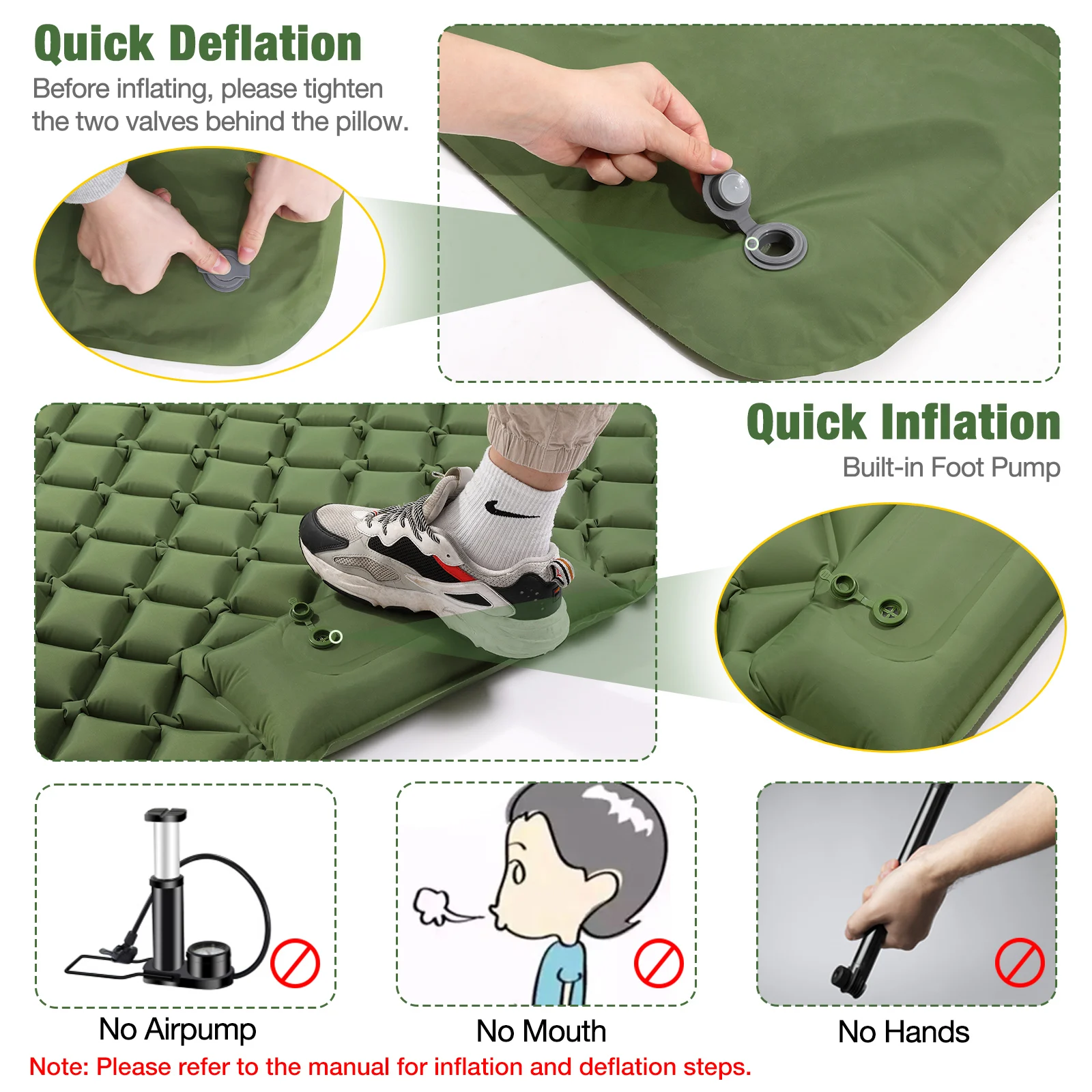 MoKo кемпинг коврик с подушкой, портативный 2 человек Самонадувающийся кемпинг матрас для альпинизма, туризма, путешествий, чрезвычайных ситуаций, легкий компактный Надувной Спальный Коврик, зеленый