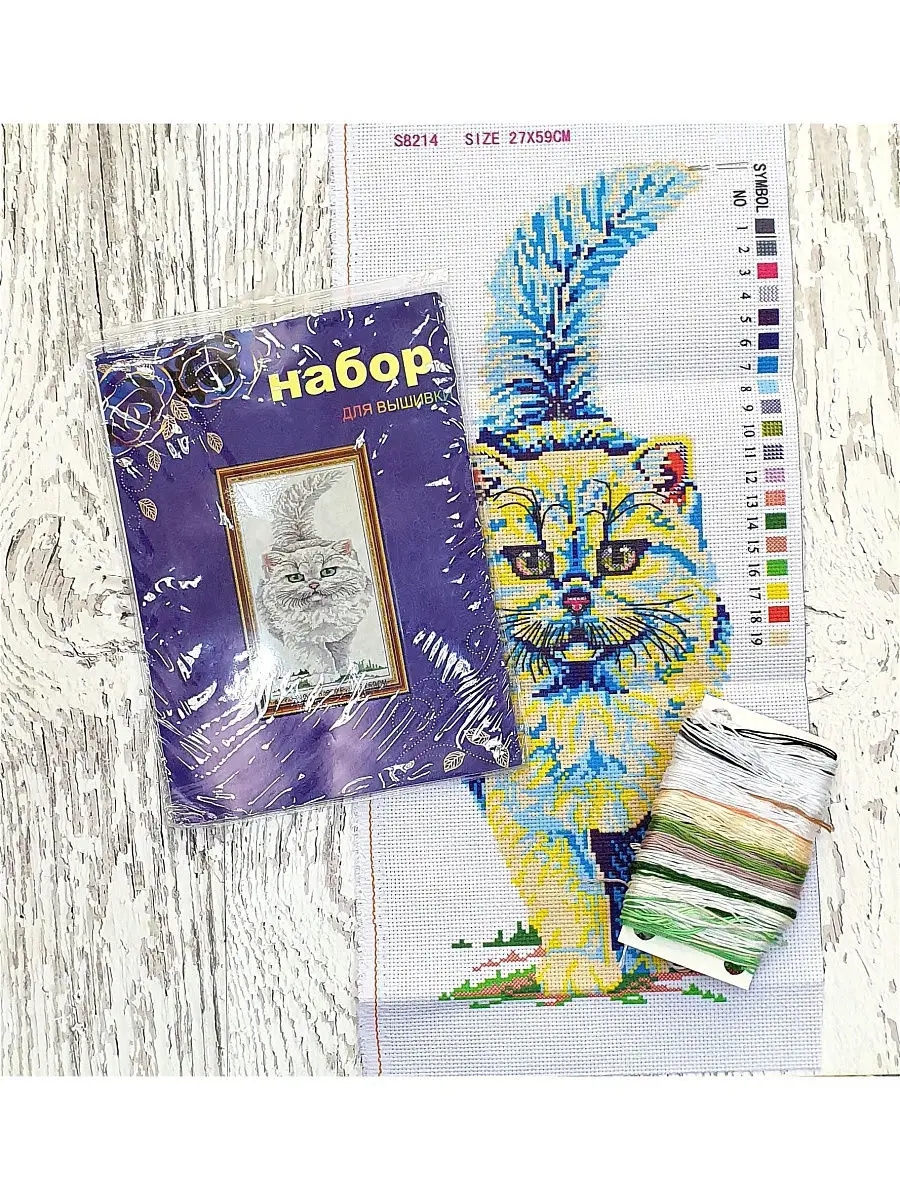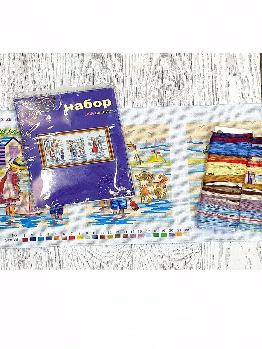 канва каунт 11 с нанесенной цветной схемой, нитки мулине, игла для вышивки, инструкция.