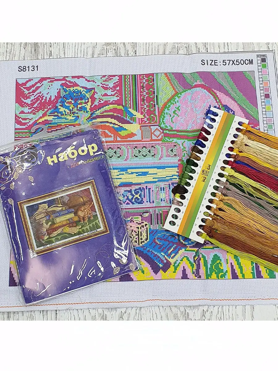 Наборы для вышивания крестом разных размеров и на разные сюжеты.