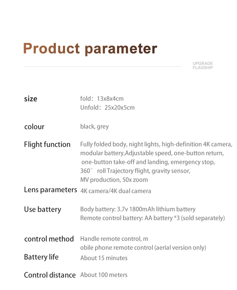 Функции: вверх/вниз, вперед/назад, влево/вправо, боковой f светильник, светодиодный светильник, Безголовый режим, автоматическая кнопка возврата, режим удержания высоты, WiFi FPV
