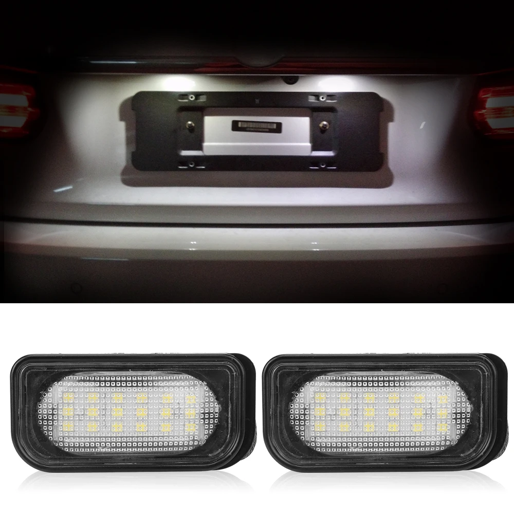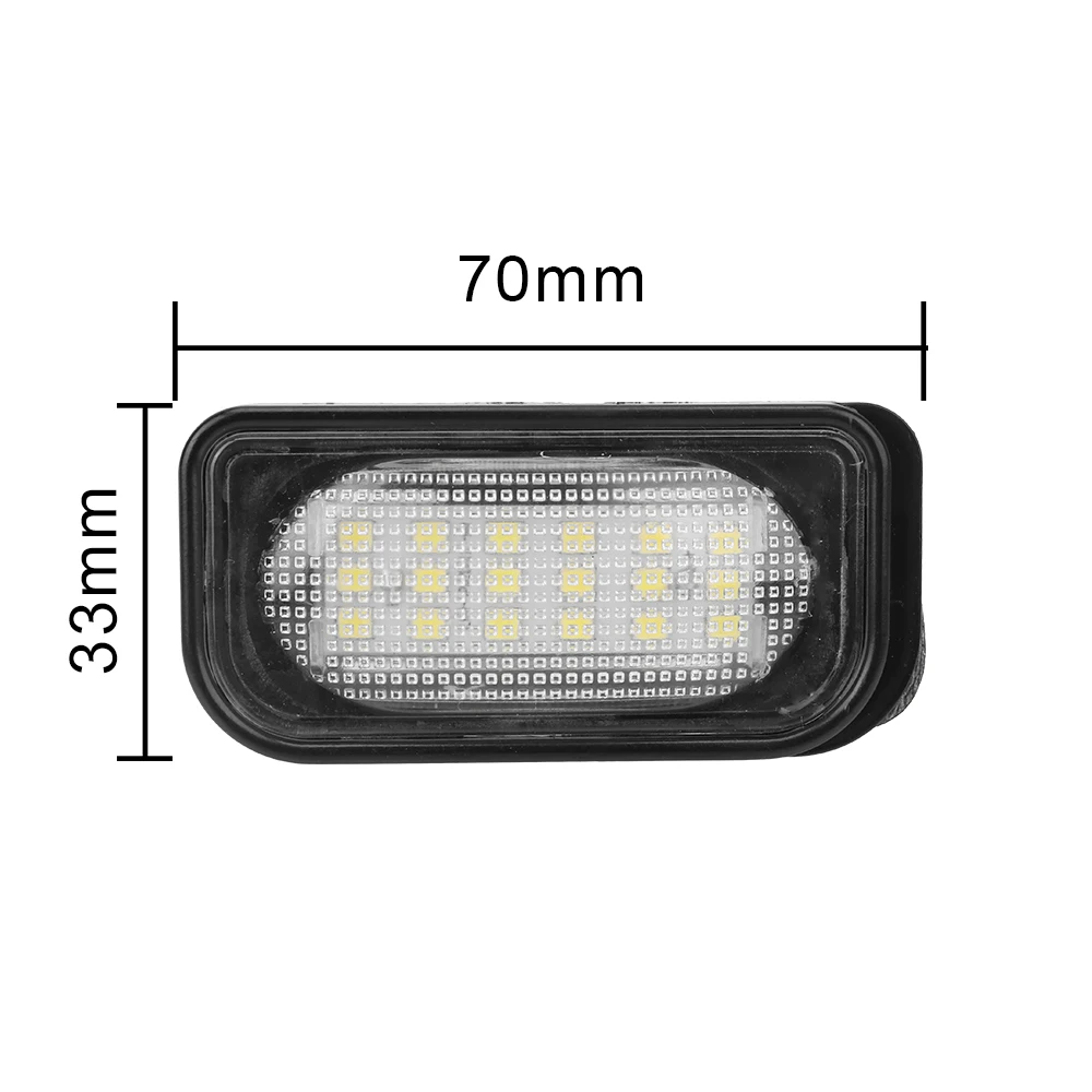 Название продукта: светильник номерного знака Мощность: 2 Вт (1 шт.) Рабочее напряжение: 12 В постоянного тока Светодиодный Цветовая температура: 6500k Срок службы: 50000 часов Рабочая температура: -40 °C ~ + 85 °C Степень водонепроницаемости: IP67 Количество бусин (штук): 18 шт. Цвет излучения: белый OEM: MA2038200256/MA2118200756Фитинги: