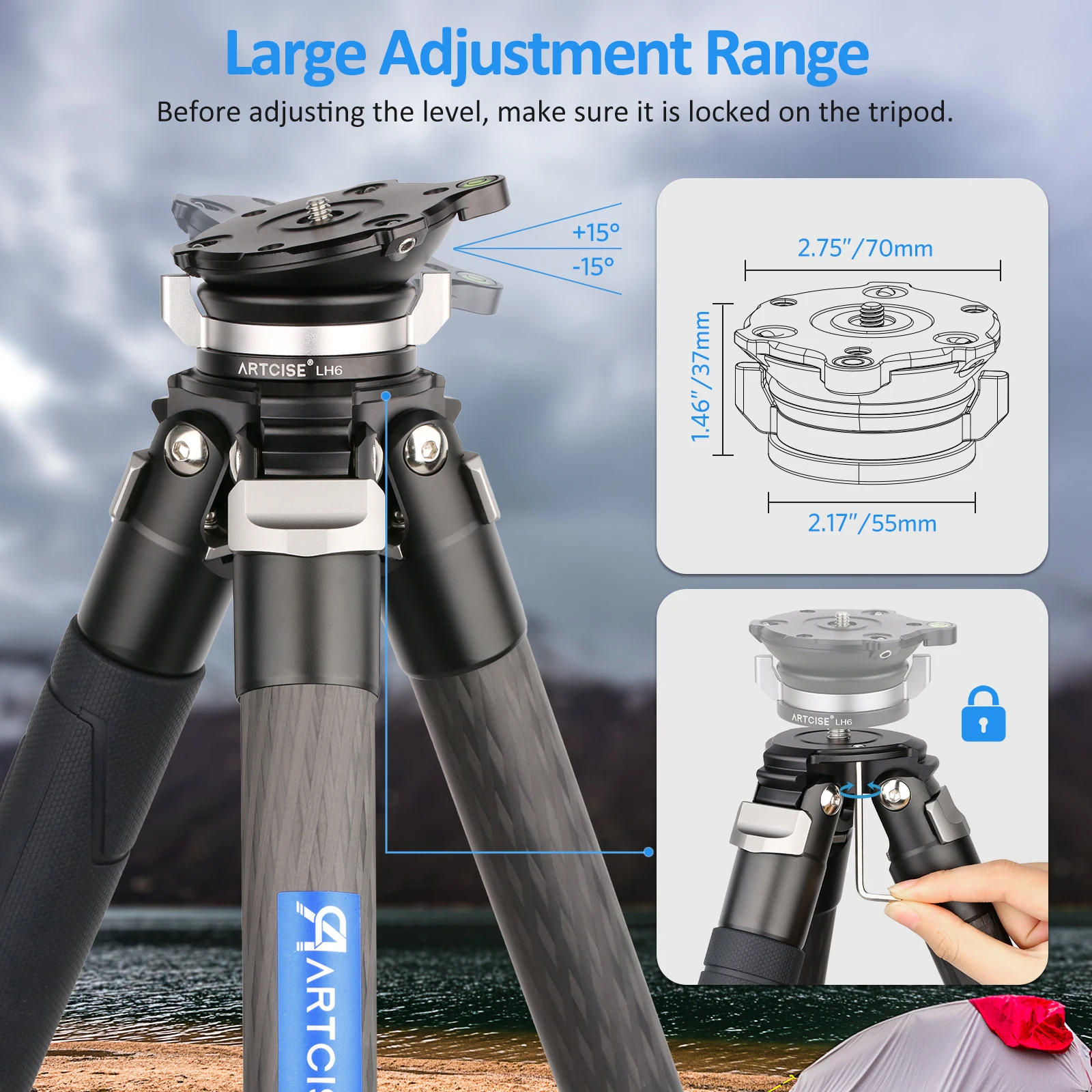 Artcise головка штатива LH6 Выравнивающая база эргономичная фиксирующая ручка головка пластина горизонтальная регулировка для камеры Canon Nikon Sony DSLR
