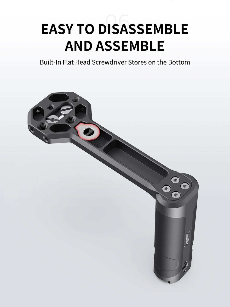 Боковая ручка SmallRig для DJI Ronin-S/ SC & Zhiyun Crane 2/V2 & Moza Air 2/AirCorss 2 Gimbals 2786 предназначена для уменьшения усталости рук и обеспечения аксессуаров для крепления при съемке с помощью gimbals. Эта эргономичная ручка позволяет держать gimbals двумя руками, чтобы уменьшить нагрузку на вес одной рукой. Подключается к нижней части карданного шарнира с помощью крепежных винтов 1/4 '' -20 и 3/8''-16. С несколькими резьбой 1/4 '' -20, ARRI 3/8'' -16 и холодным башмаком для аксессуаров, таких как оригинальный шарнирный штатив, пластина для камеры и крепление для монитора 2346. Рукоятка может быть настроена для правой или левой руки на основе ваших потребностей. В комплект входит отвертка с плоской головкой для закрепления винта ручки и хранения на дне.