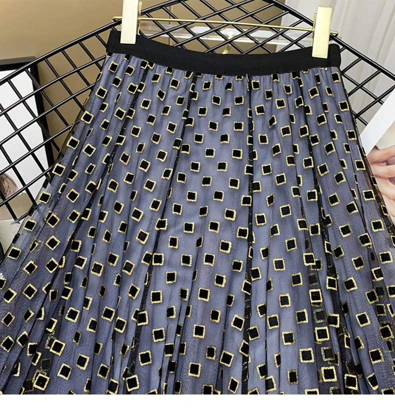 Весенняя плотная клетчатая юбка, женская летняя юбка средней длины, трапециевидная юбка, новинка 2022, элегантная фатиновая юбка с высокой талией и принтом