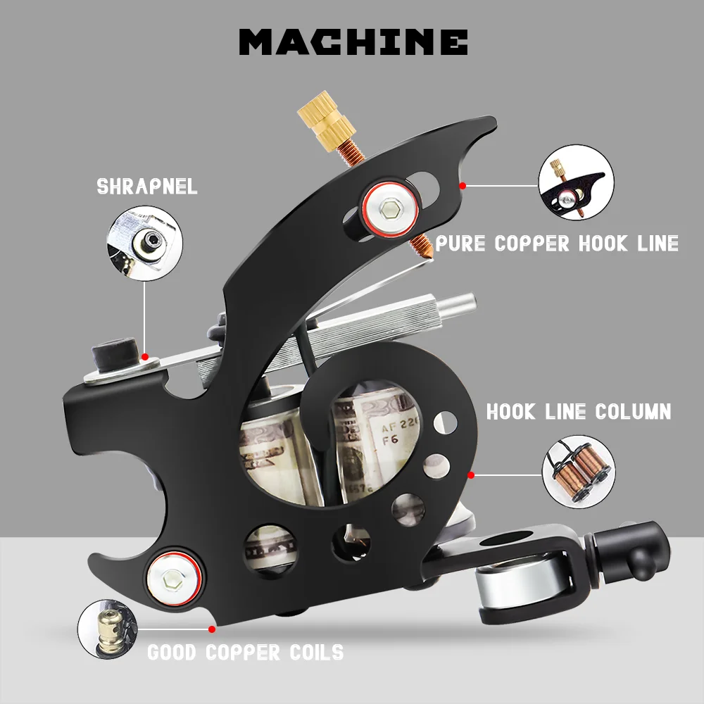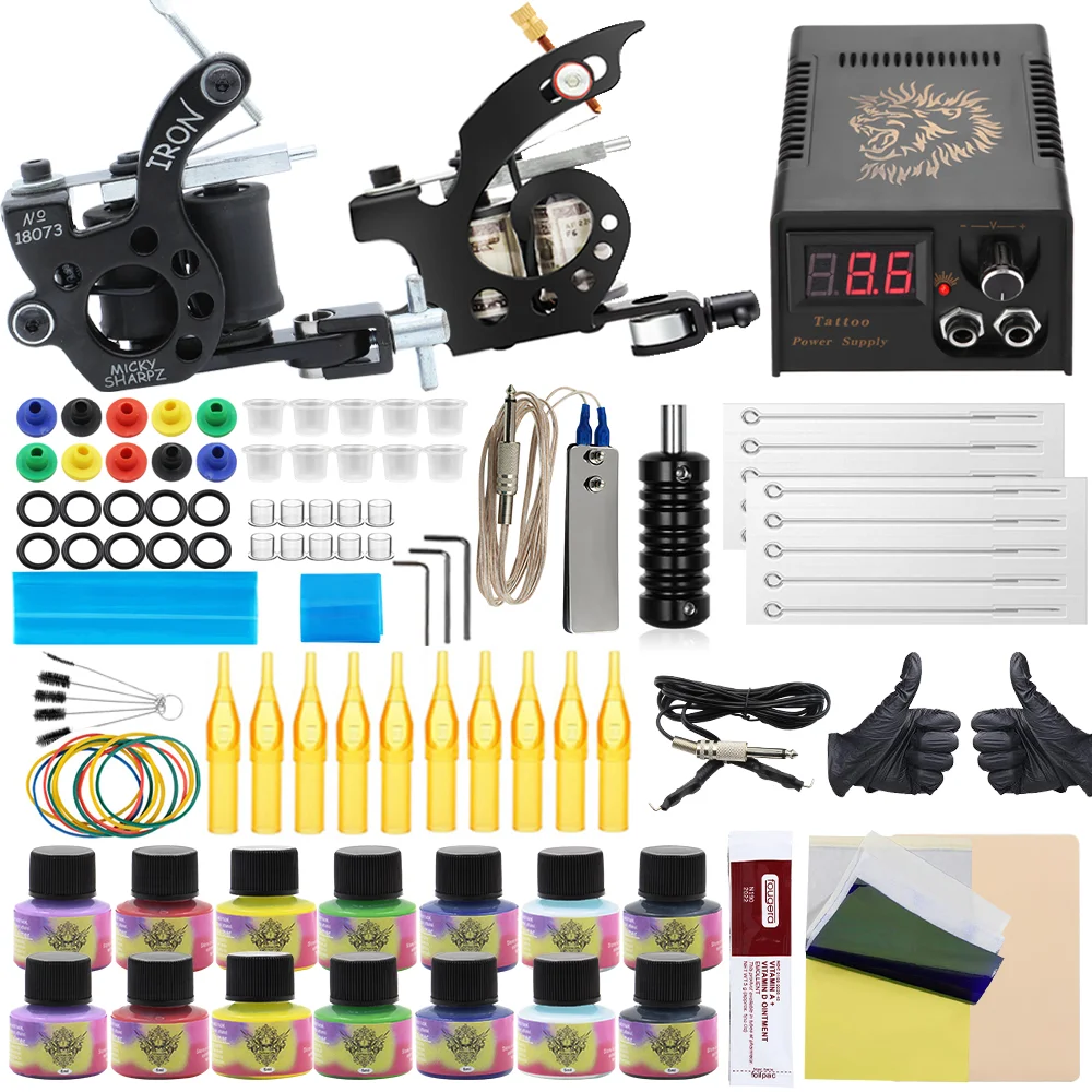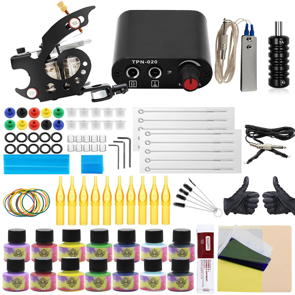 Набор для тату EMALLA, полный комплект для тату-машины, набор для тату-пистолета с тату-иглами, чернила, источник питания, набор инструментов для макияжа