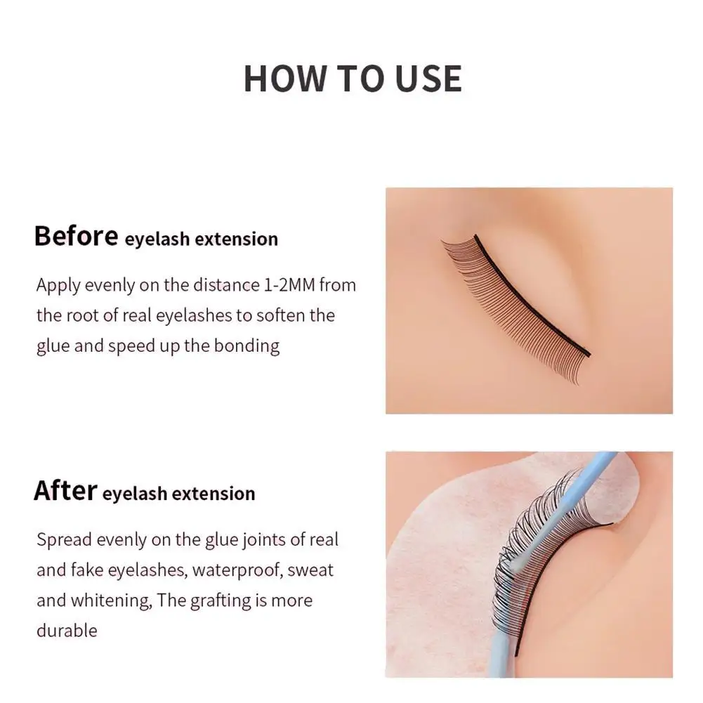 Равномерно распределите на клеевые соединения настоящих и поддельных ресниц, чтобы предотвратить воду и отбеливание и увеличить количество дней, которые ресницы поддерживаются.