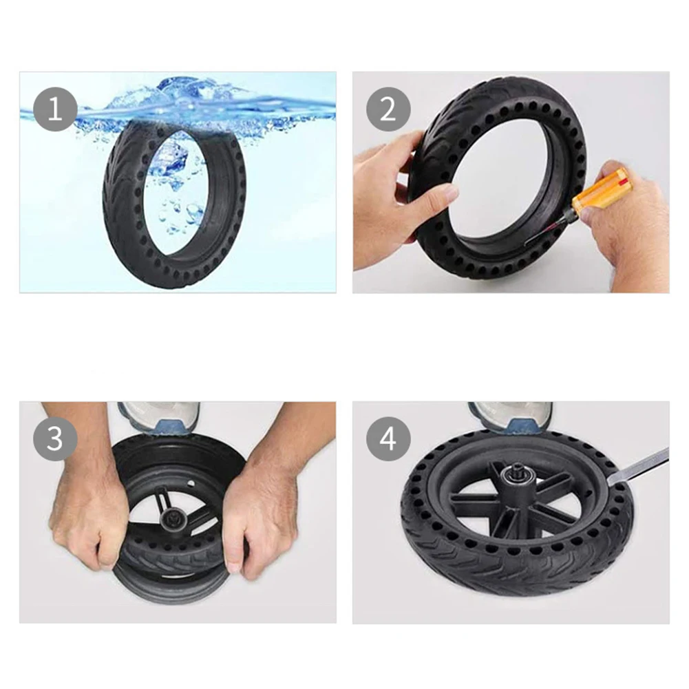 Перед покупкой проверьте боковую стенку шины. В том случае, если он показывает "8,5x2", шина может использоваться. Резиновый материал является противоскользящим и износостойким, как пневматическая шина. Не беспокойтесь о резком торможении и проколе
