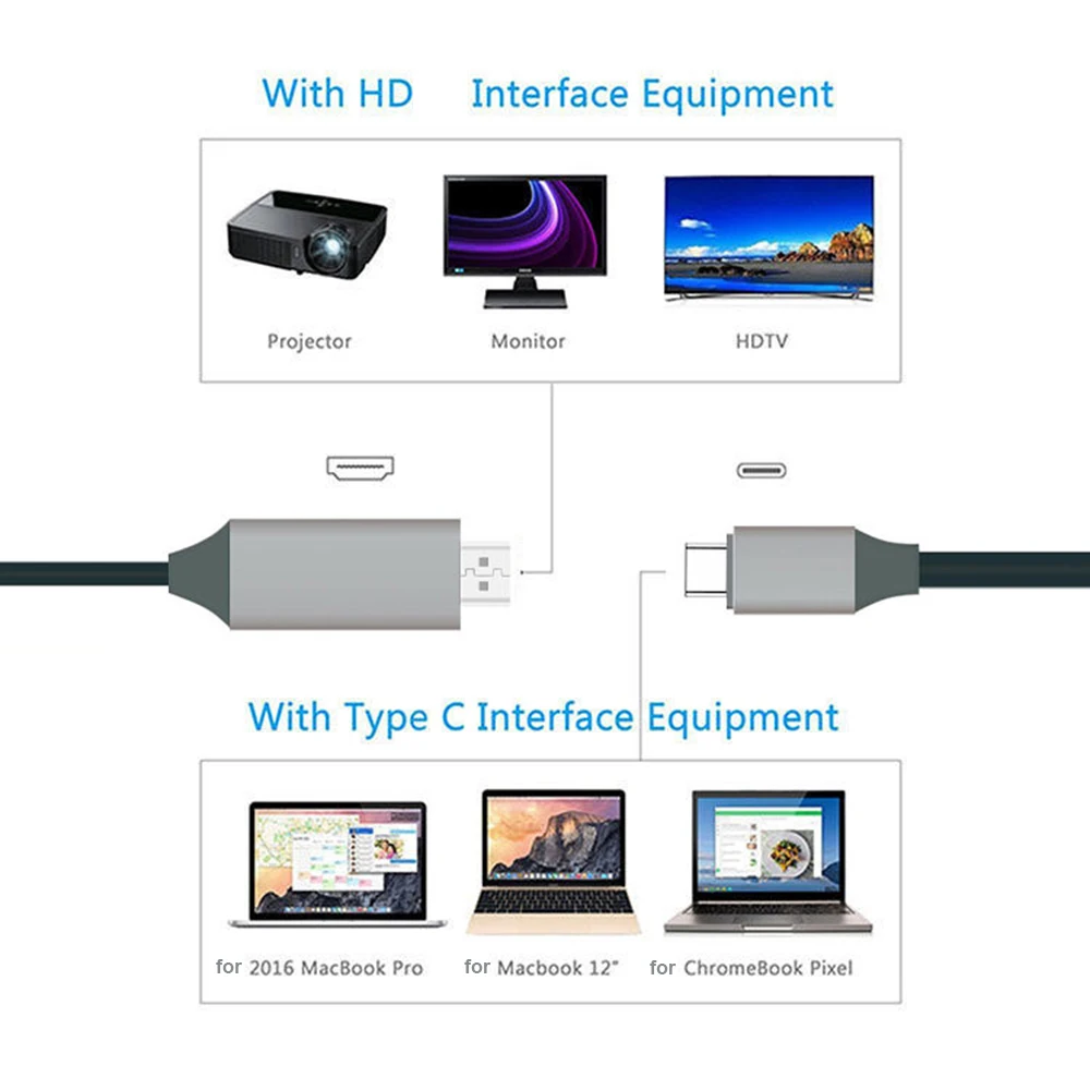 1 x штыревой кабель Type-C для HDTV HDMI-совместимый кабель