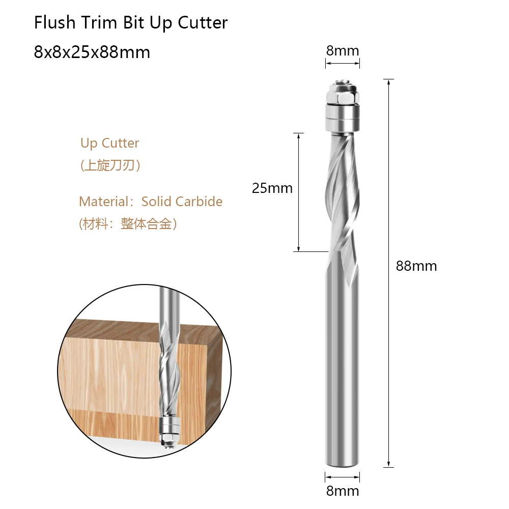 LAVIE 1 шт. 8 мм хвостовик сливная отделка твердосплавный спиральный топовый подшипник фрезерный станок с ЧПУ Концевая фреза для обработки древесины Z08
