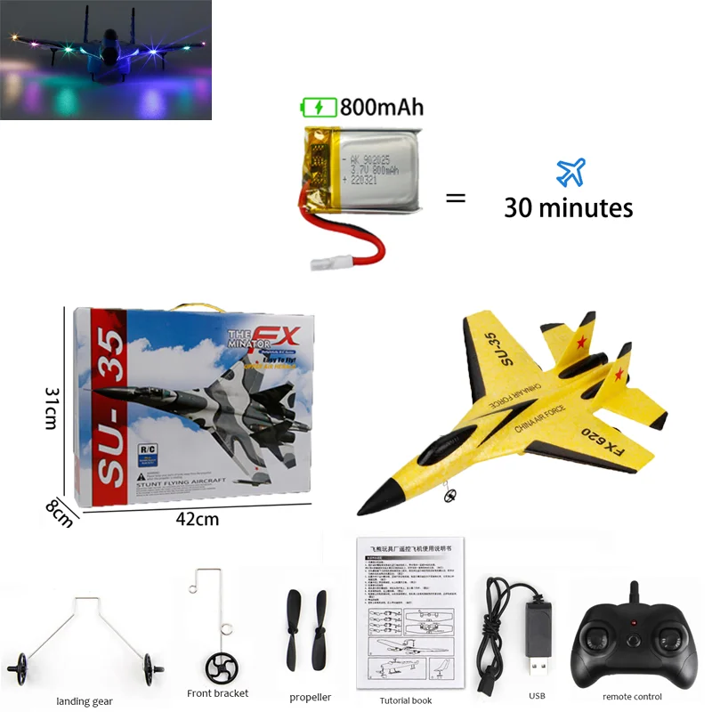 Он имитирует классические военные самолеты SU-35, которые могут похвастаться небольшим и властным внешним видом.