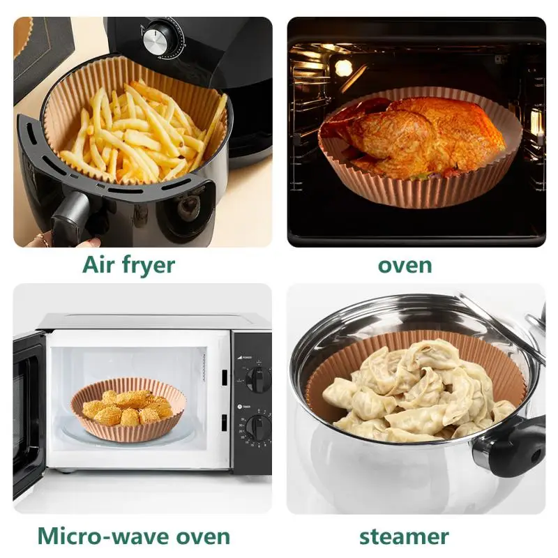 【Широко использова】-подходит для воздушной фритюрницы, микроволновой печи, духовки, пароварки, плиты и т. Д. Бумажные вкладыши могут быть применены для выпечки, обжарки, жарки или сервировки пищи, подходит для домашней выпечки, кемпинга, барбекю, летние вечерние и так далее, легкие и практичные.