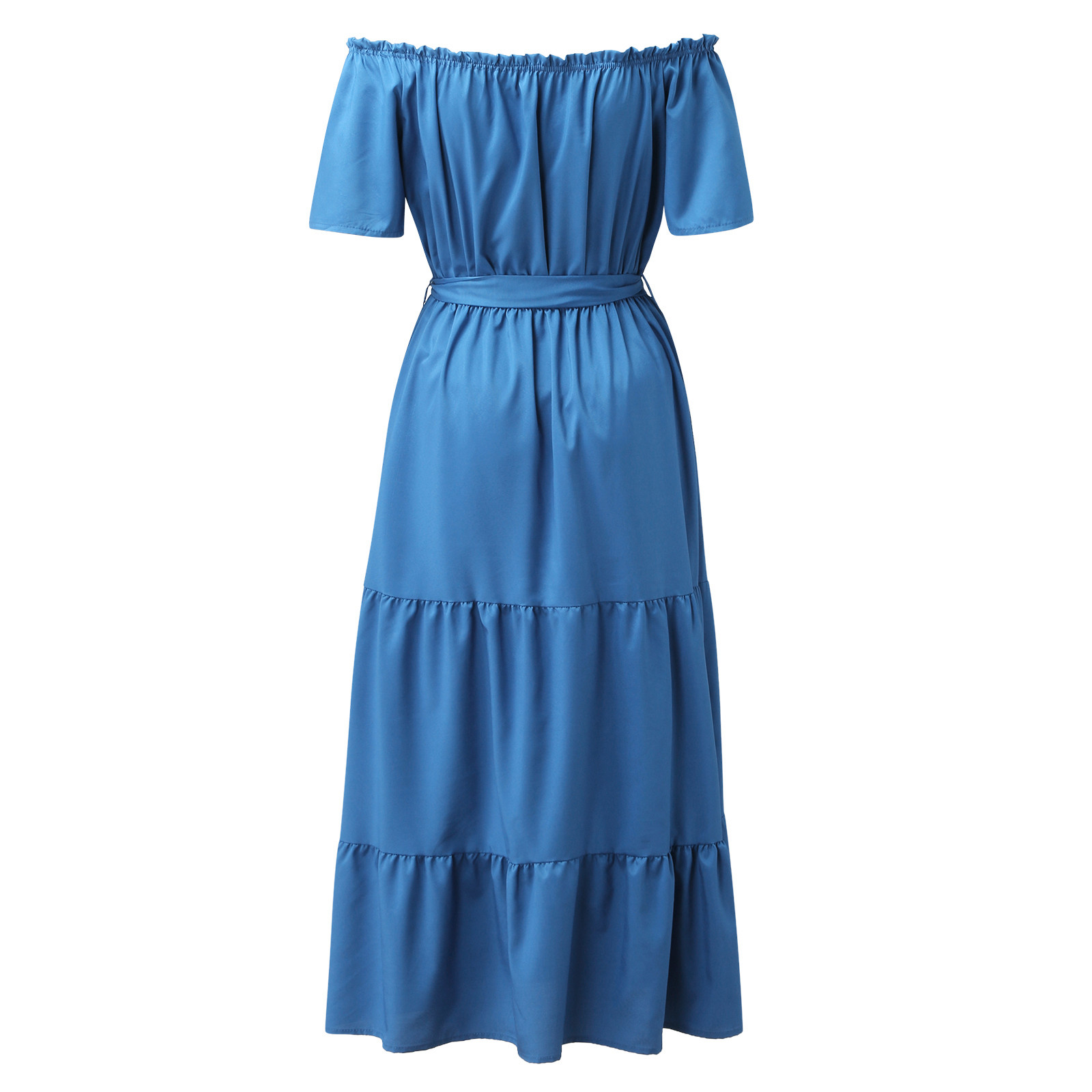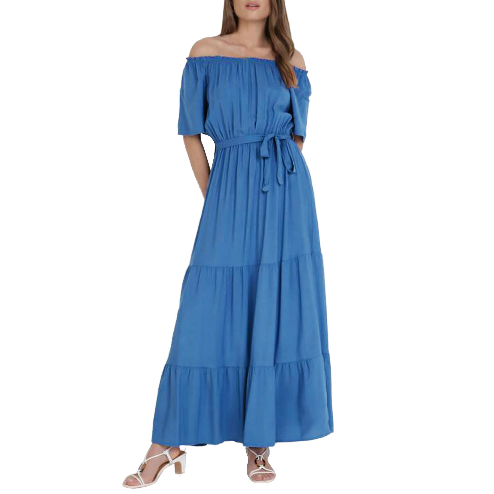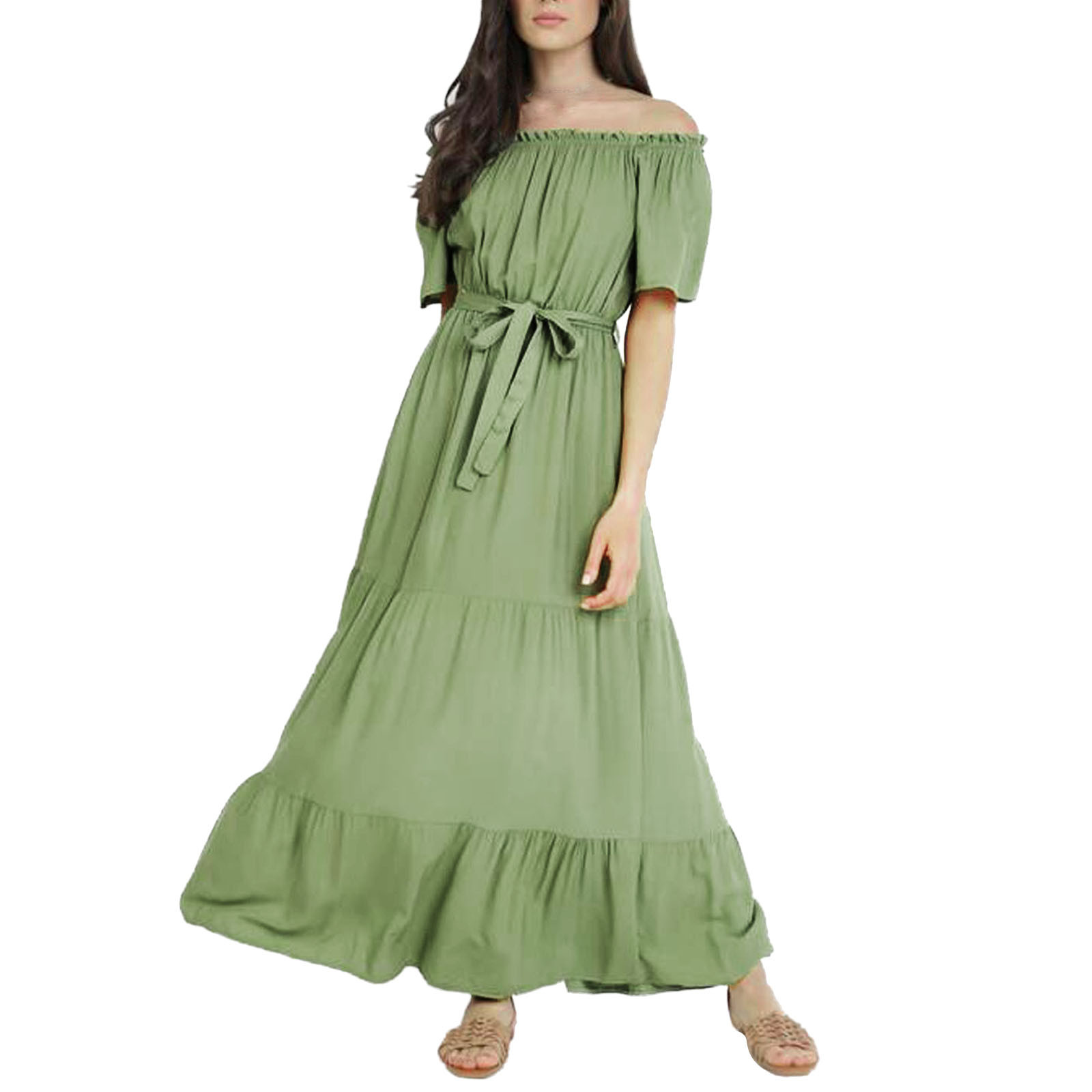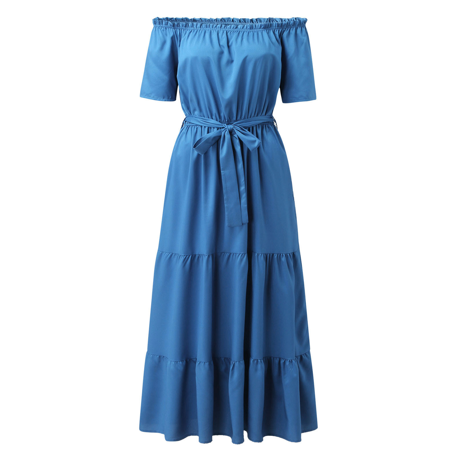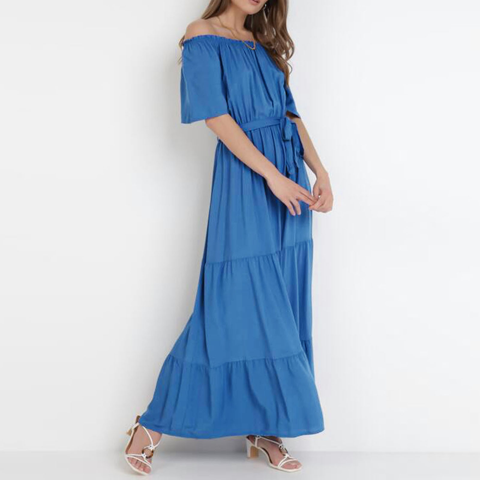 Особенности: Это летнее платье с открытыми плечами и открытой спиной показывает элегантную изгибу вашей шеи, платье с высокой эластичной талией изменяет вашу талию. Растягивающаяся ткань бедра вмещает различные фигуры, многослойное длинное платье с гофрированным подолом показывает вашу женскую изгибу.