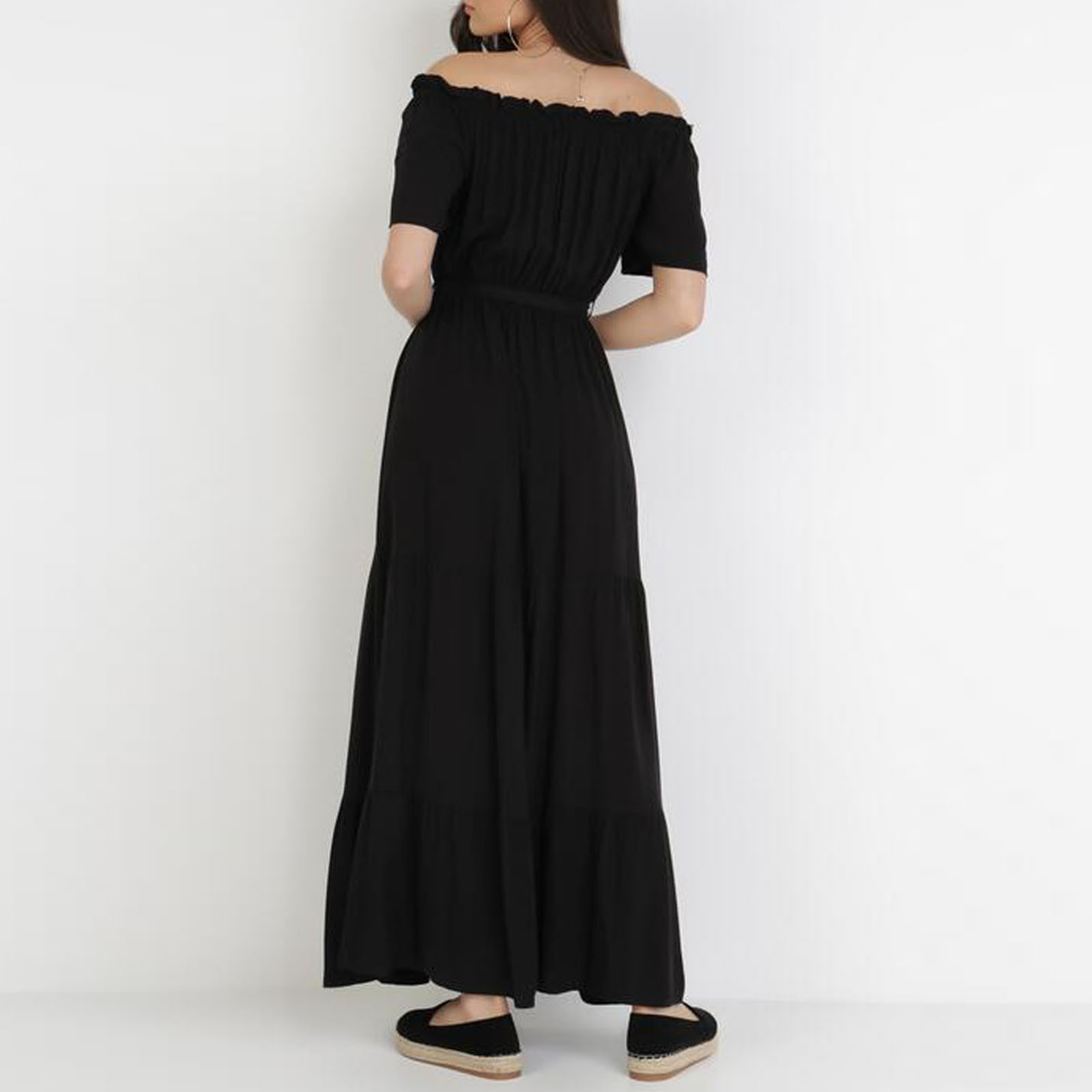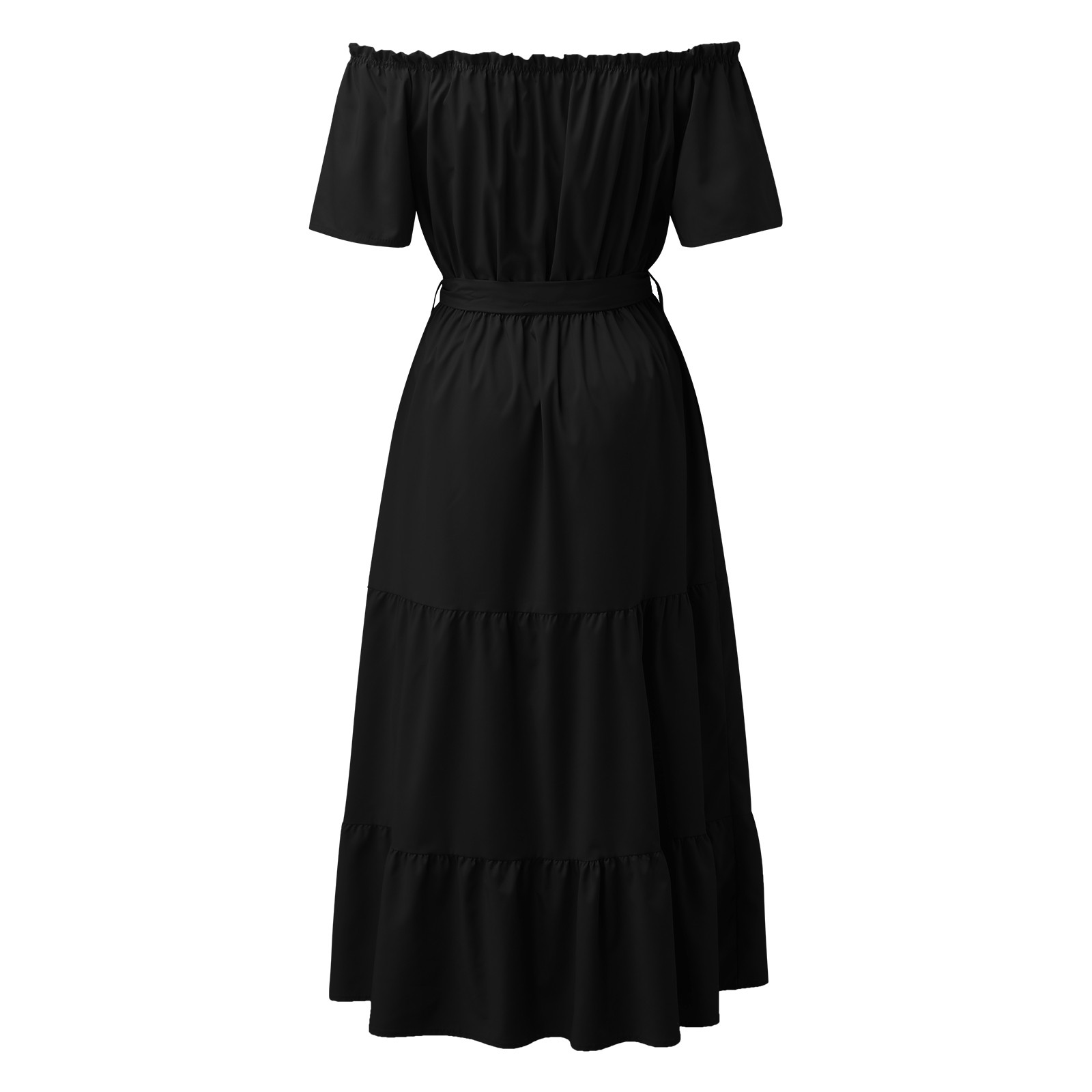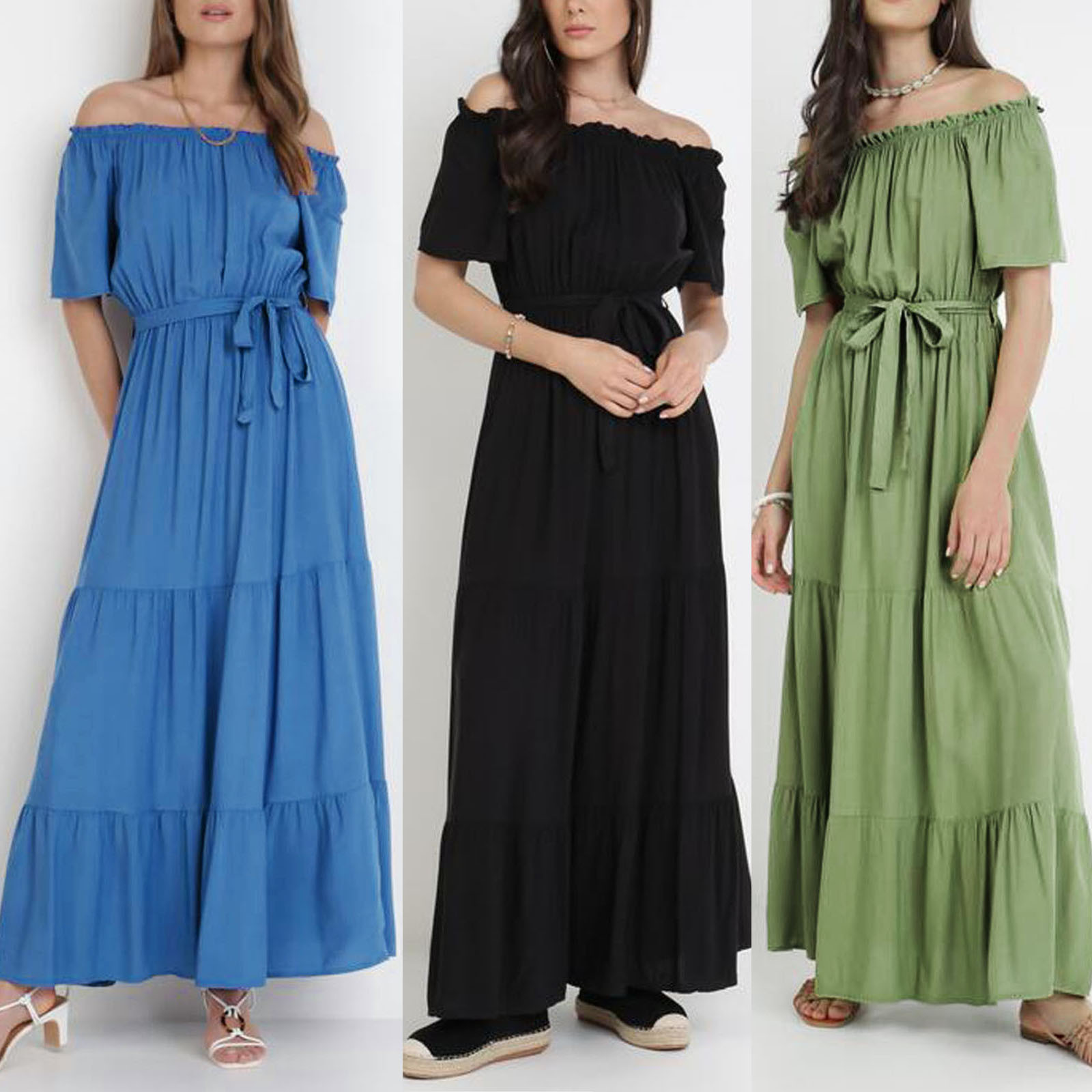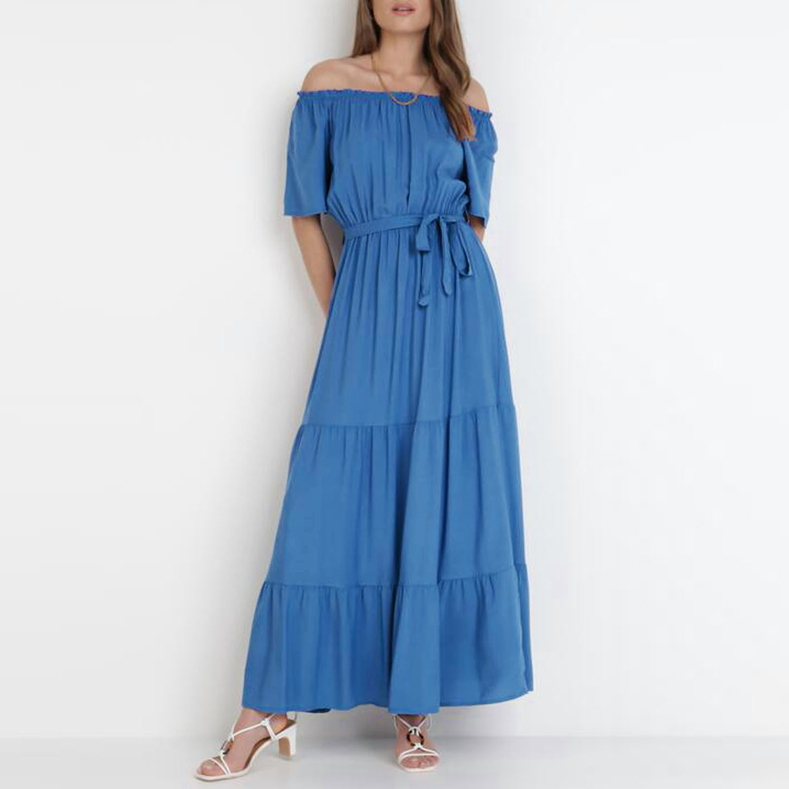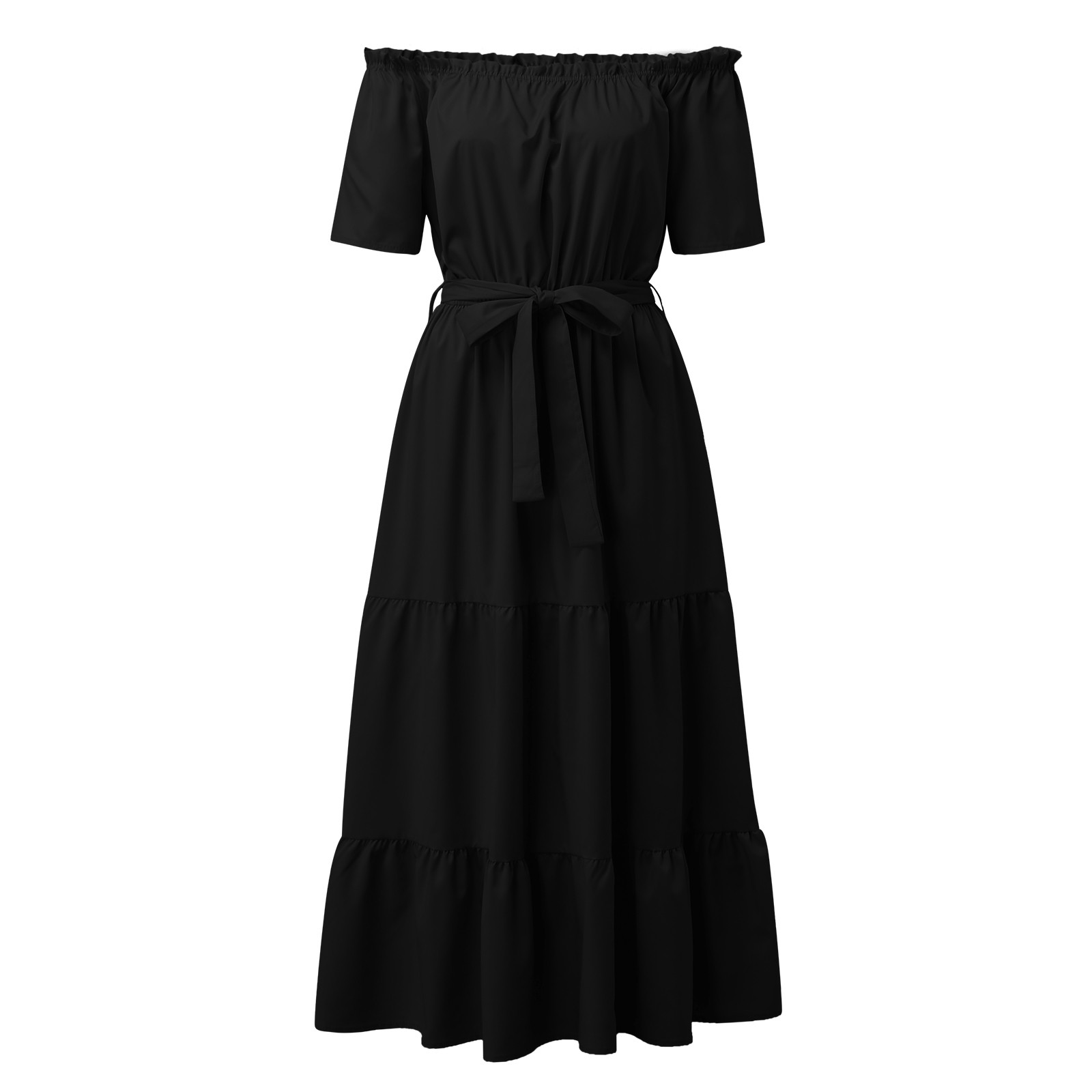Особенности: Это летнее платье с открытыми плечами и открытой спиной показывает элегантную изгибу вашей шеи, платье с высокой эластичной талией изменяет вашу талию. Растягивающаяся ткань бедра вмещает различные фигуры, многослойное длинное платье с гофрированным подолом показывает вашу женскую изгибу.