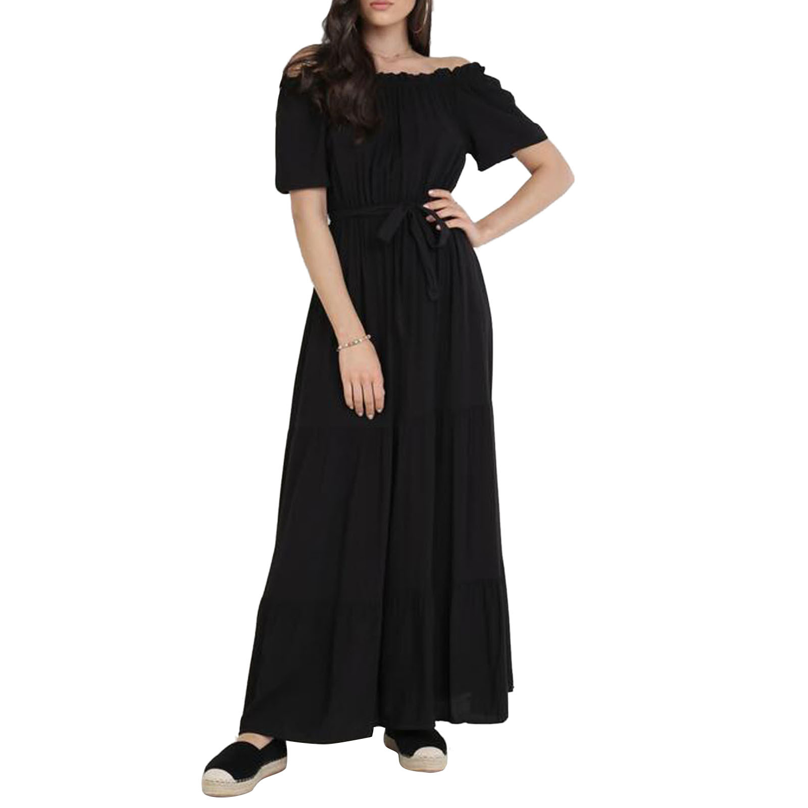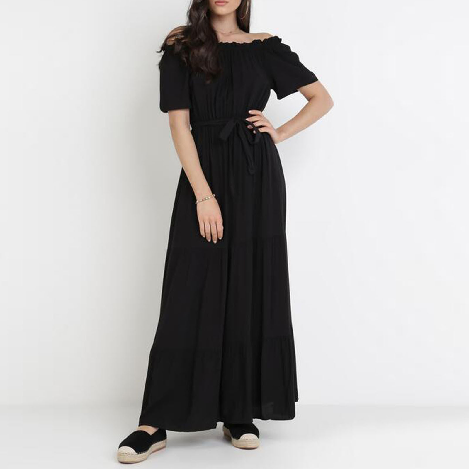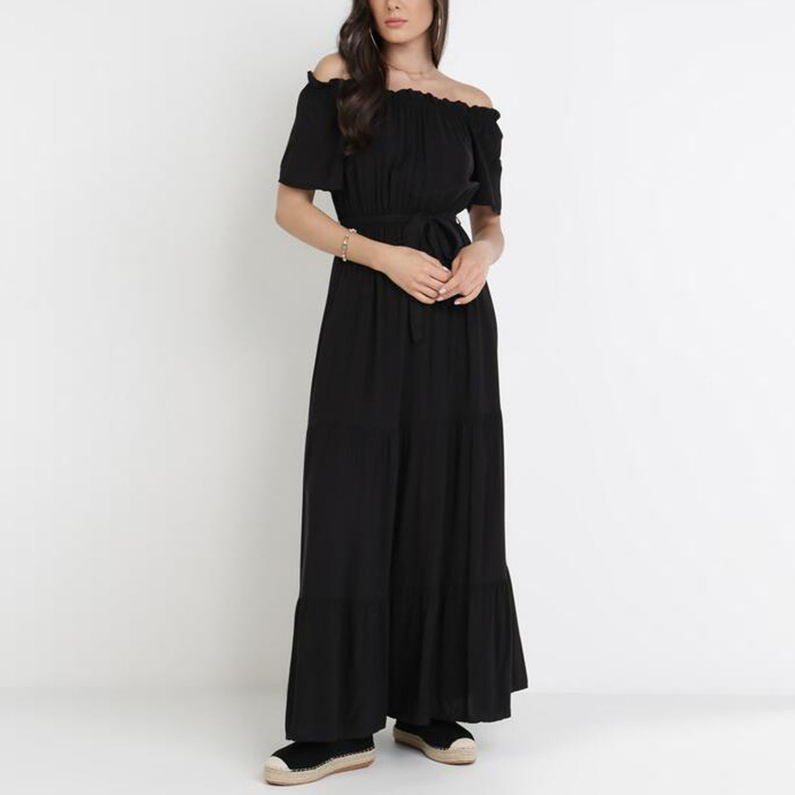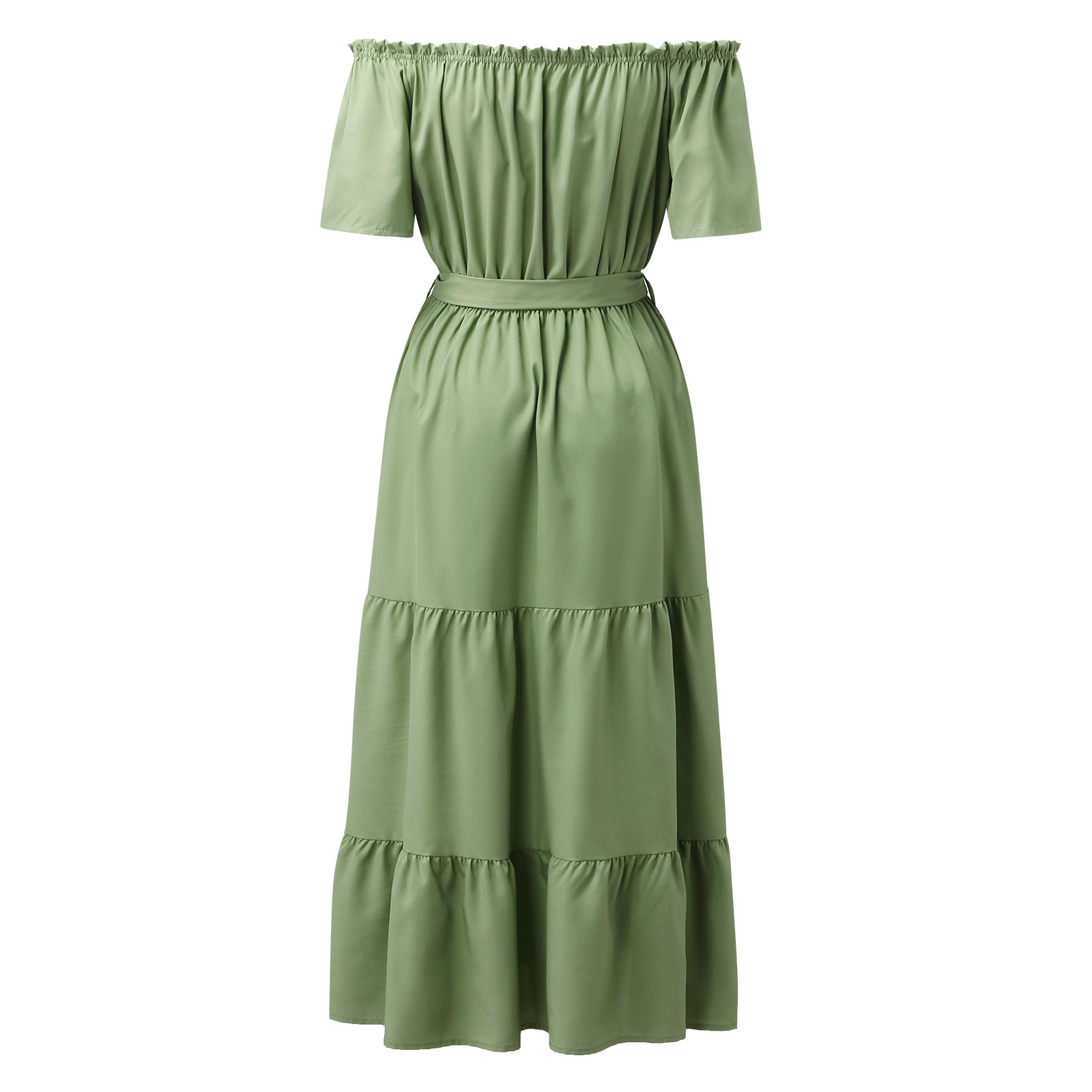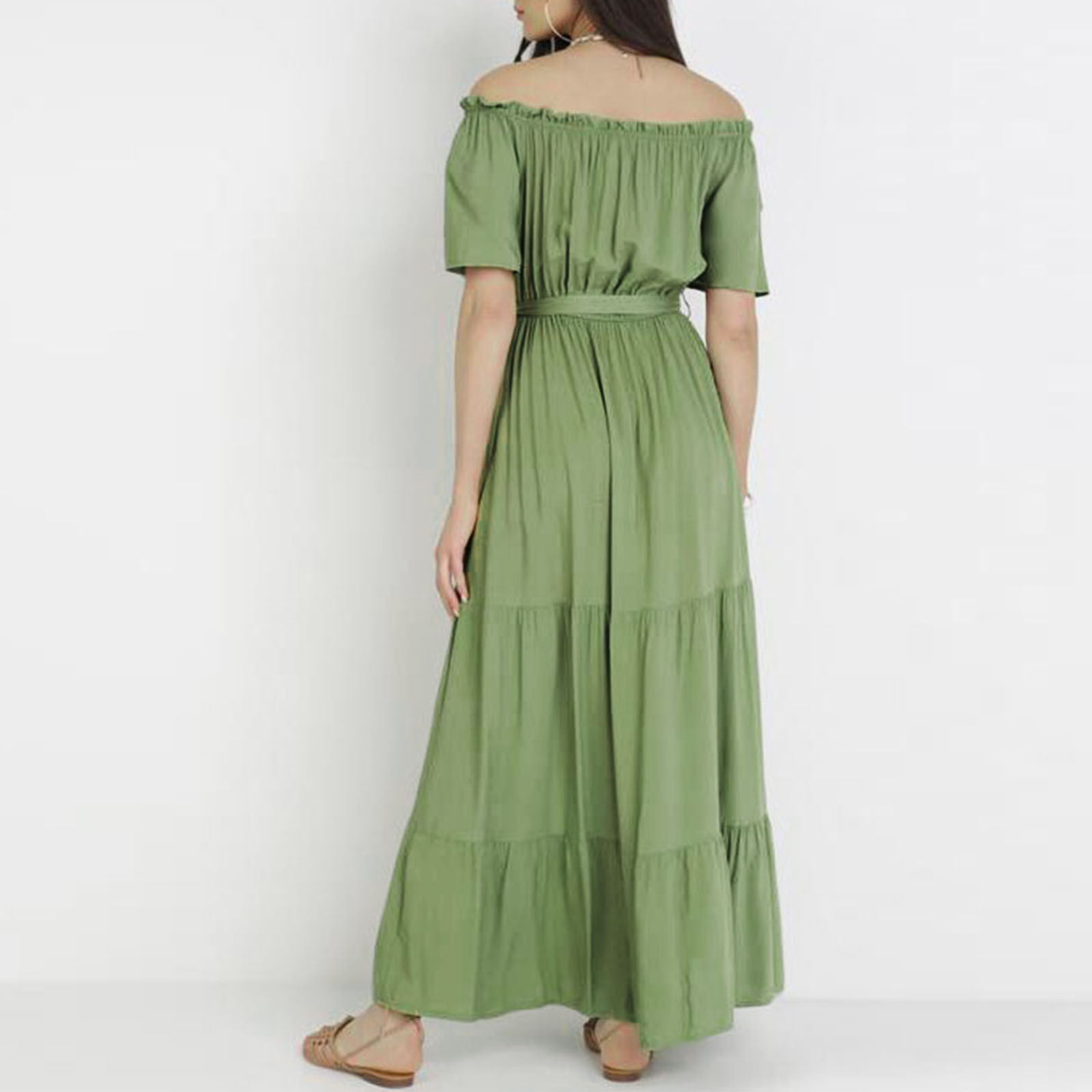 Особенности: Это летнее платье с открытыми плечами и открытой спиной показывает элегантную изгибу вашей шеи, платье с высокой эластичной талией изменяет вашу талию. Растягивающаяся ткань бедра вмещает различные фигуры, многослойное длинное платье с гофрированным подолом показывает вашу женскую изгибу.