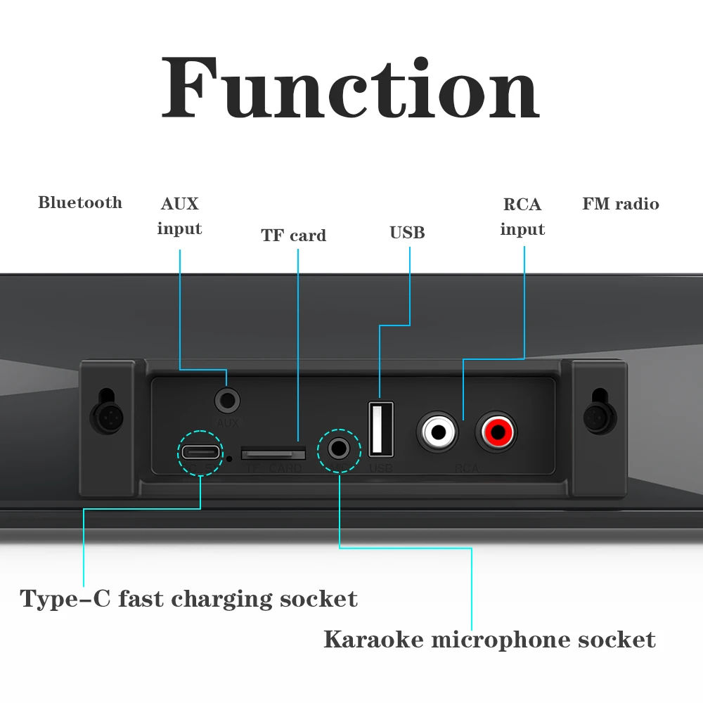 9. Аудио вход: Bluetooth,RCA, 3,5 мм Aux, tf-карта, USB