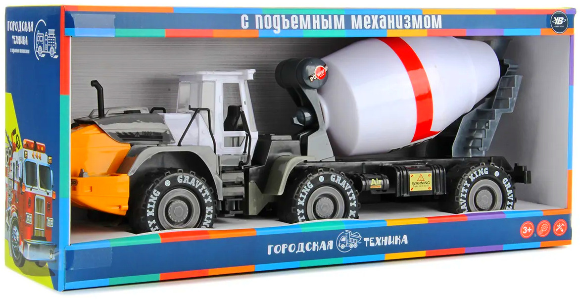 У машины подвижные детали. Вращается бочка, поворачивается слив, открывается капот. Кабина поворачивается.