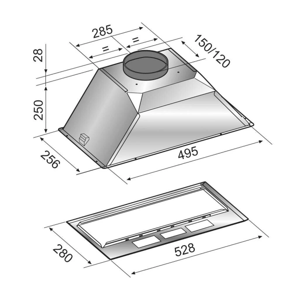 Полновстраиваемая кухонная вытяжка.