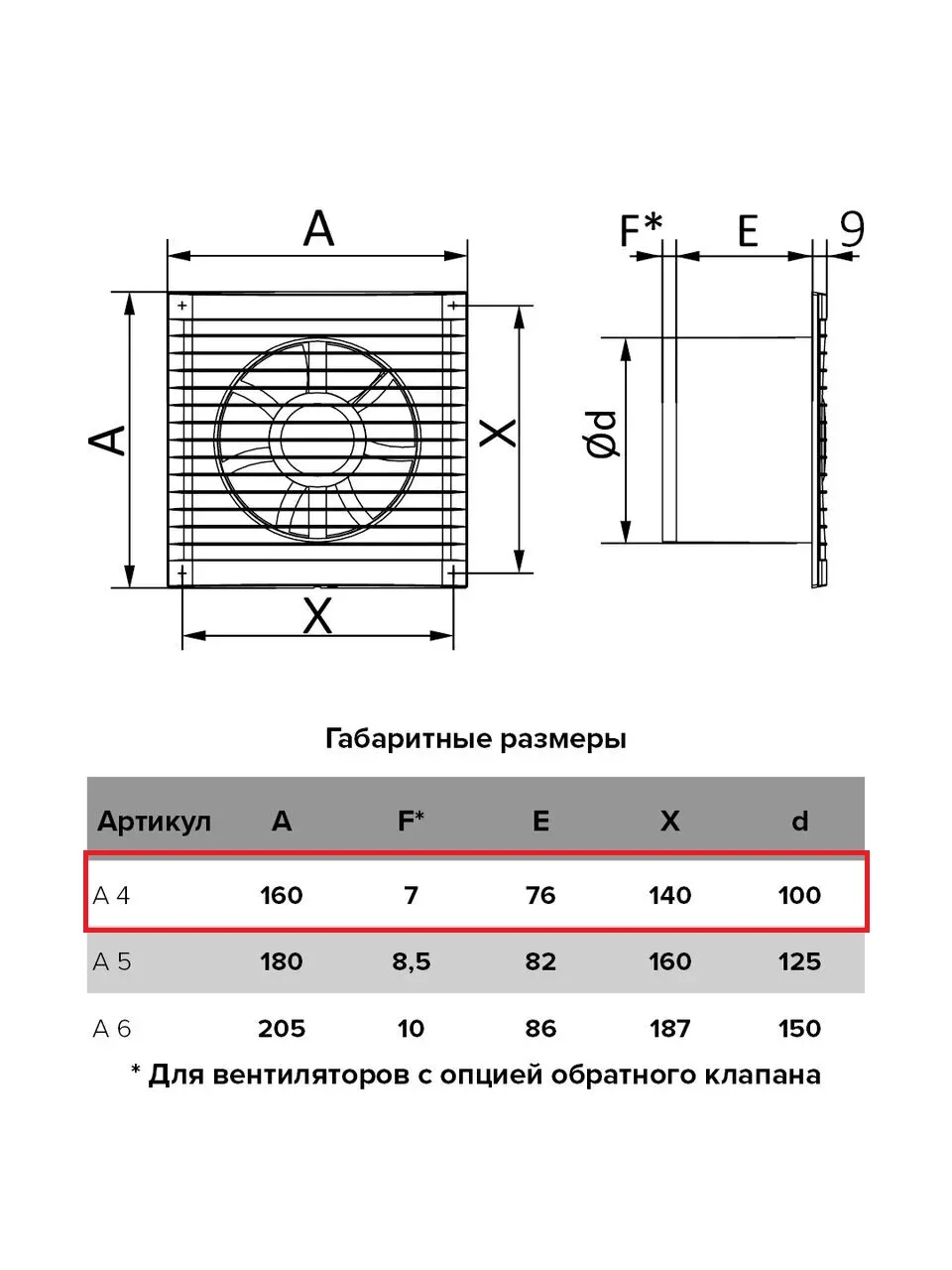Вентилятор A 4S C применяется для вентиляции бытовых и аналогичных небольших и средних помещений. Имеет сверхтонкую лицевую панель с прямыми жалюзи в современном дизайне. Вентилятор оснащен предохранителем, срабатывающим при температуре двигателя +115°С - +125°. Он останавливает работу вентилятора в целях электро- и пожаробезопасности. Вентилятор защищён от попадания на него брызг ― безопасность и надёжность вытяжной вентиляции в ванной комнате гарантирована. Дополнительно оснащен антимоскитной сеткой и обратным клапаном.