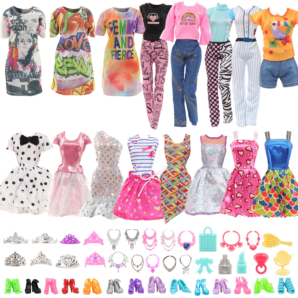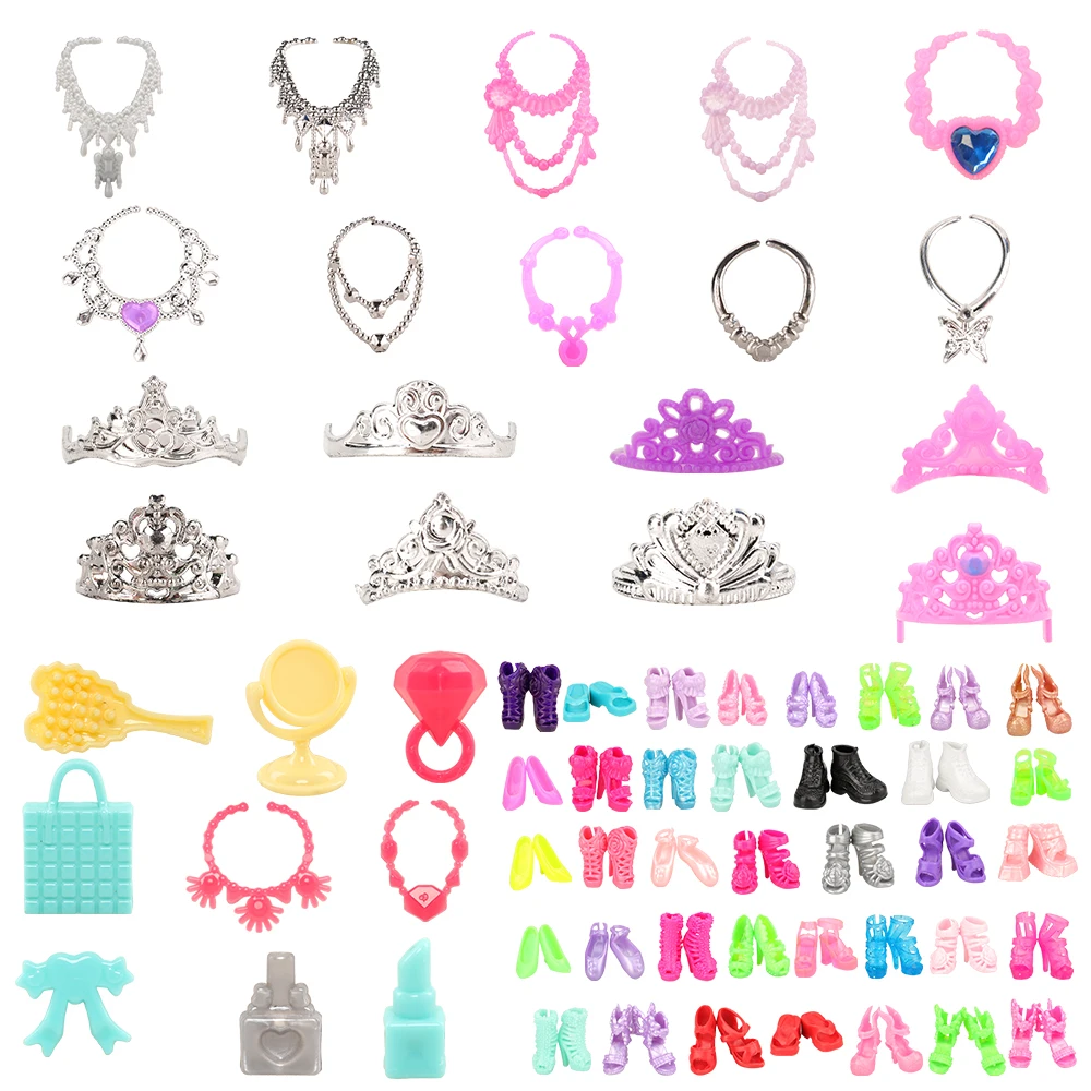 Barwa/недорогие аксессуары для кукольной одежды 41 шт. = 10 предметов одежды + 10 туфель + 6 коронок + 6 ожерелий + 9 аксессуаров для макияжа для Барби