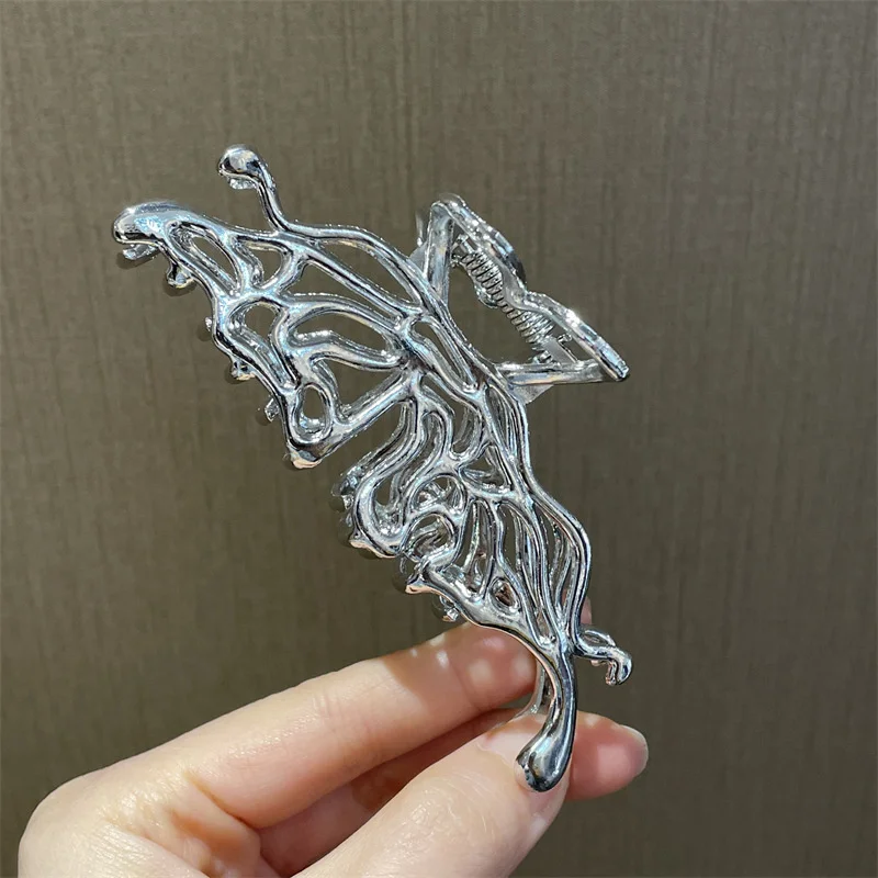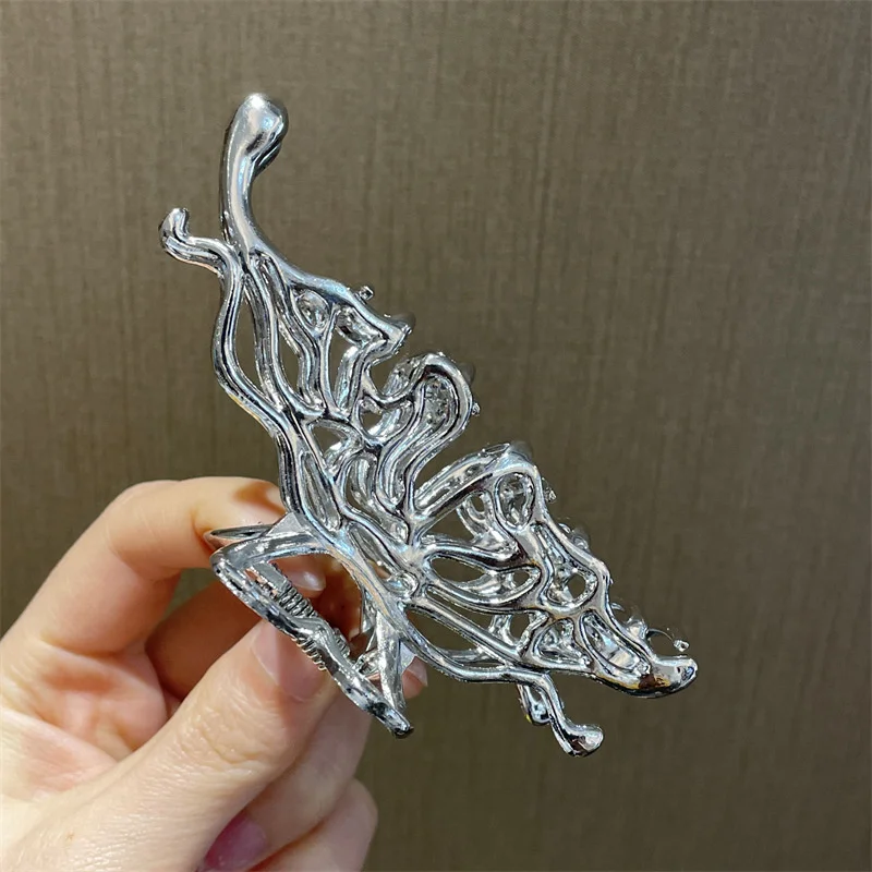 Серебряный цвет металлическая бабочка зажим уникальный дизайн шпилька Женская задняя часть головы мода акула клип женские головные уборы аксессуары