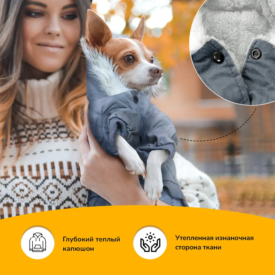 Куртка с капюшоном для собак создана специально для прохладной погоды. Выполнена из безопасного и качественного материала – хлопка и прекрасно согреет питомца в непогоду. Куртка подойдет для прогулок, поездок на машине и в самолете, для активного отдыха. Изделие легко надевается через голову и не сковывает движения. Вашему питомцу будет тепло и комфортно.
