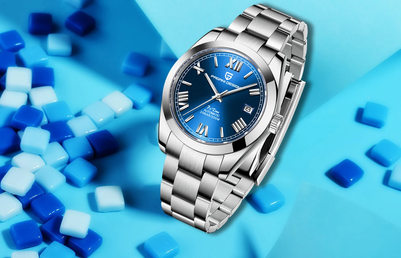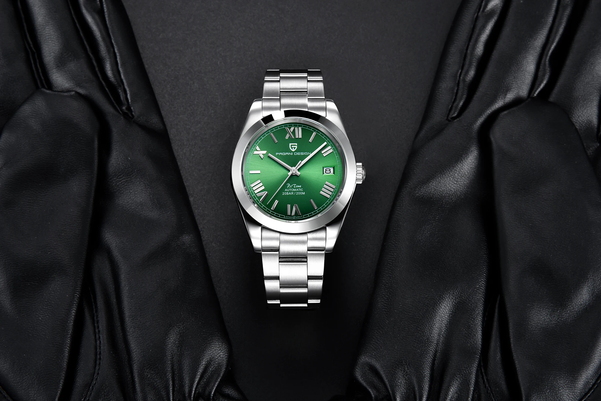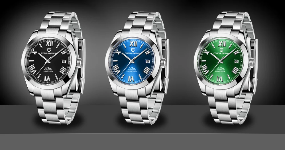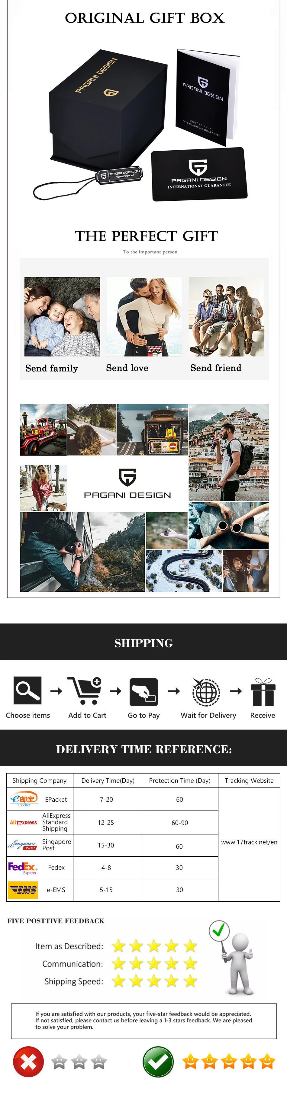 Элегантные Мужские часы серии PAGANI DESIGN: Длина стола: 210 мм, диаметр стола: 39,5 мм, ширина ремешка: 20 мм, толщина циферблата: 12 мм, общий вес стола: 144 г. Водонепроницаемость 200 м: чехол идеально запечатан, а чехол из нержавеющей стали имеет винтовую головку для повышения водонепроницаемости. Хорошо подходит для плавания и дайвинга, но не для горячей весенней воды.