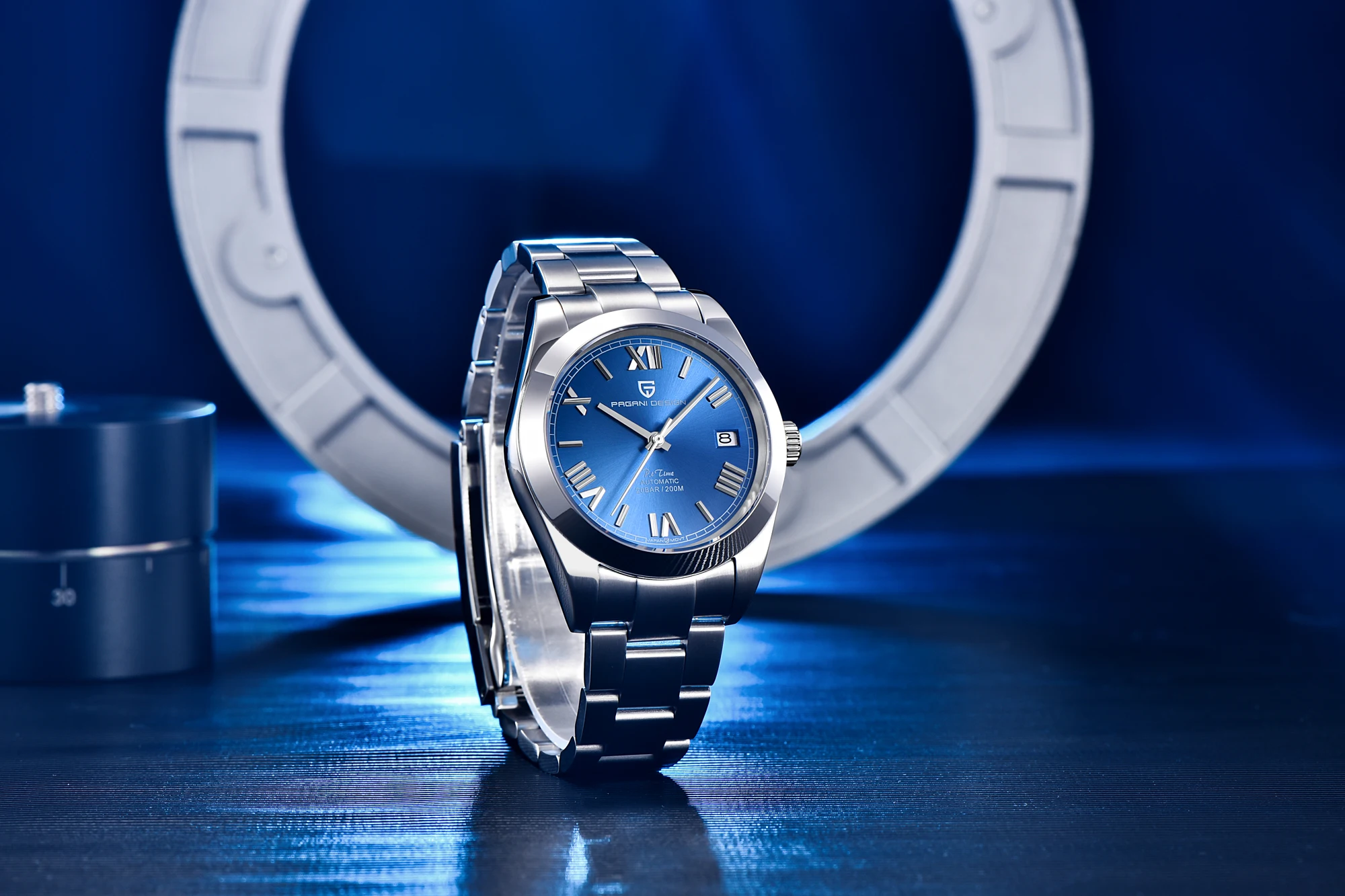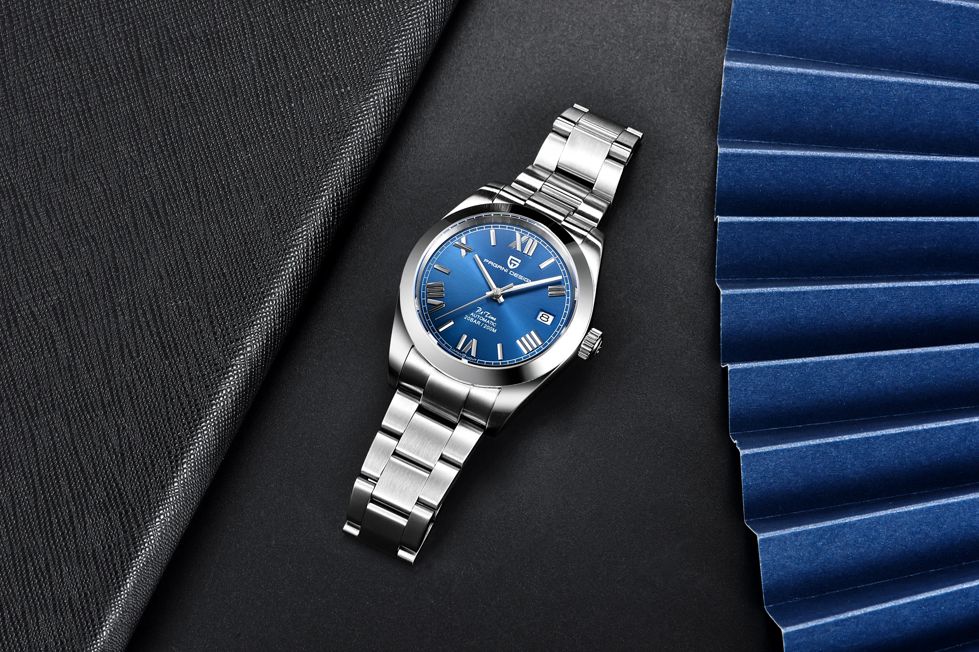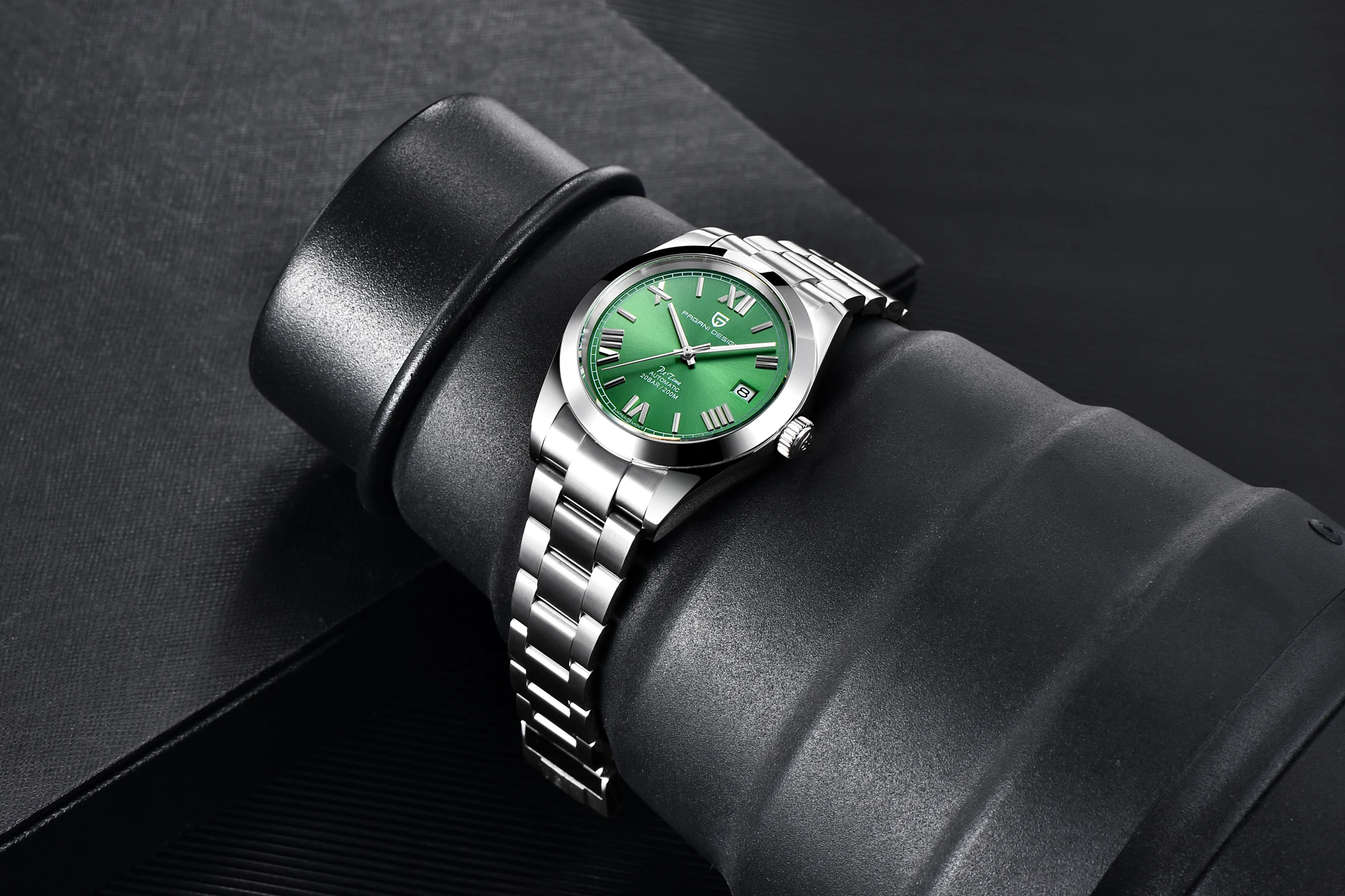 Элегантные Мужские часы серии PAGANI DESIGN: Длина стола: 210 мм, диаметр стола: 39,5 мм, ширина ремешка: 20 мм, толщина циферблата: 12 мм, общий вес стола: 144 г. Водонепроницаемость 200 м: чехол идеально запечатан, а чехол из нержавеющей стали имеет винтовую головку для повышения водонепроницаемости. Хорошо подходит для плавания и дайвинга, но не для горячей весенней воды.