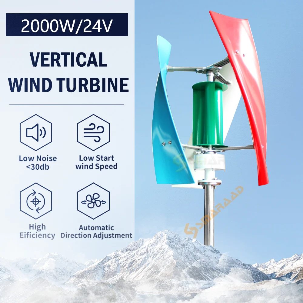 2,3 лопасти с изогнутым дизайном, эффективно используют энергию ветра и получают более высокую мощность