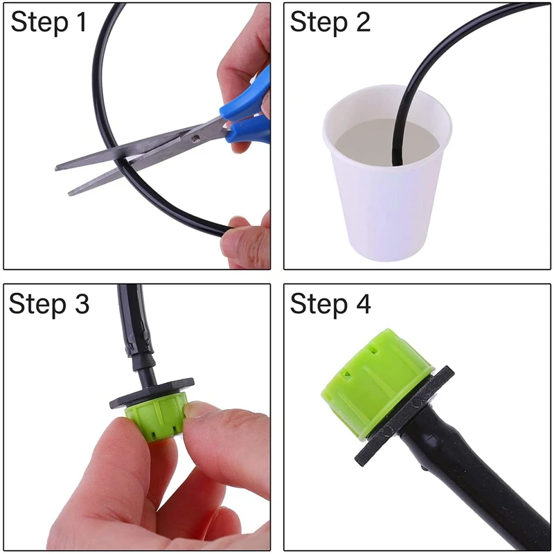 Легко подключить: каждая капельница для орошения оснащена резьбой 1/4 дюйма, которая подходит для труб 4 мм/7 мм (внутренний/наружный диаметр); просто подключите трубку к Барбу, чтобы создать свою собственную маленькую систему водоснабжения