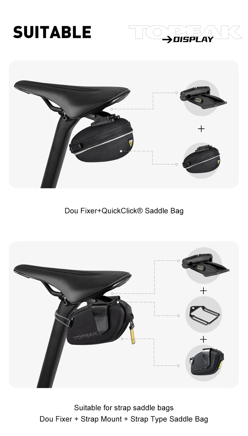 Нижнее Крепление: TOPEAK QuickClick седельные сумки и большинство ремней седельные сумки/HybirdMaster Mini / FreePack и FlashFender DF (с нижним креплением)