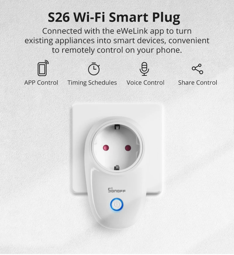 Умная розетка Sonoff S26 Wifi Schakelaa Plug App/Vocie Afstandsbediening Stopcontact timing Werkt Met AlexaОписание: