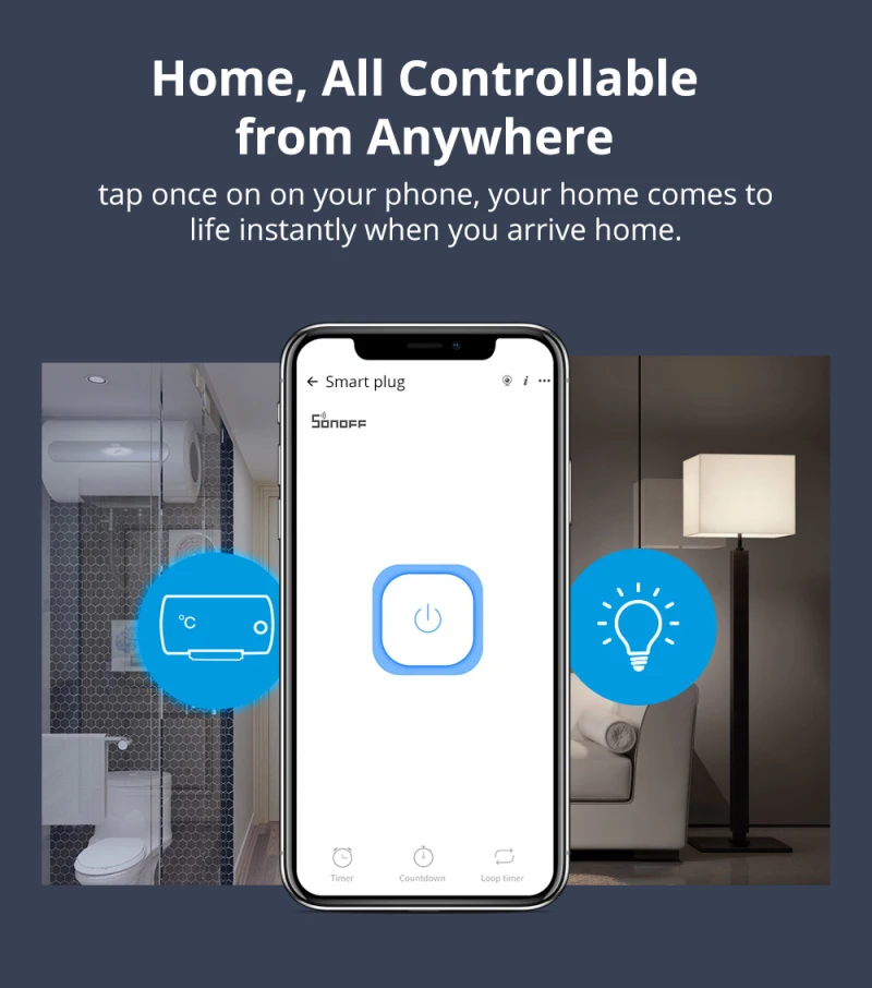 【Дистанционное управление от Anywhere】 S26R2 WiFi вилка может включить или выключить подключенные устройства из любого места с помощью приложения eWeLink
