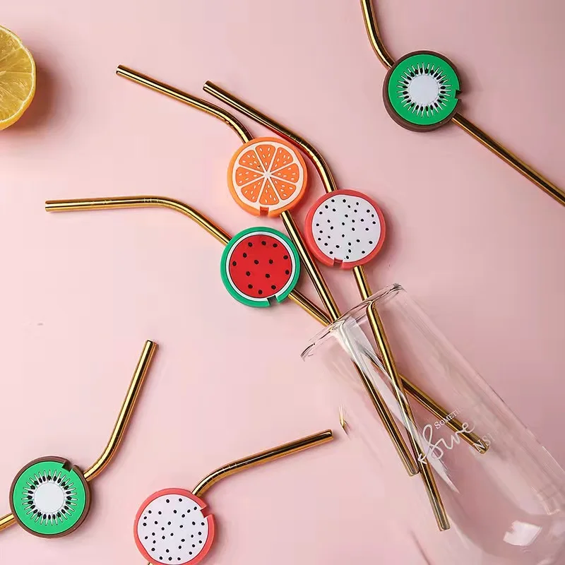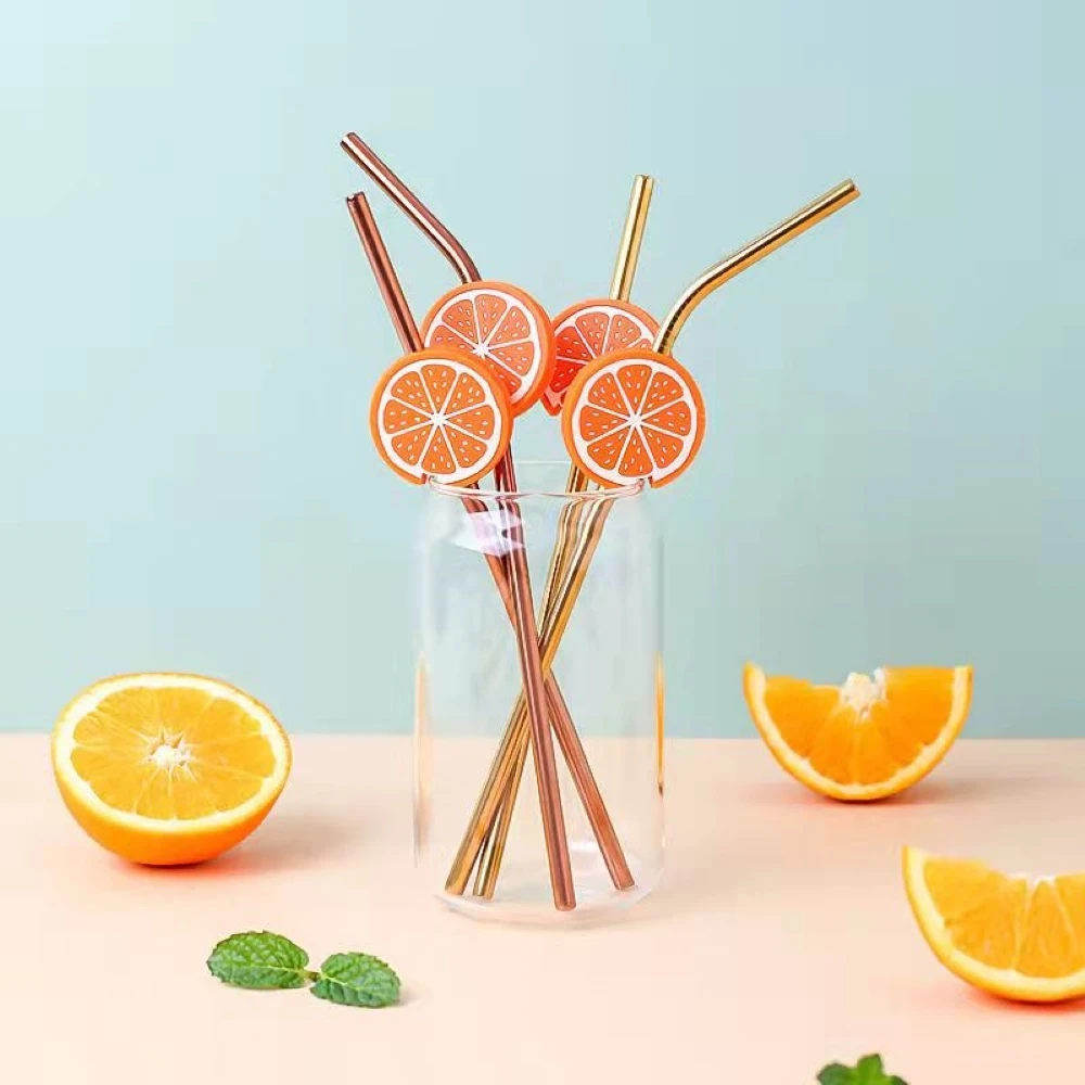 Promotional Fruit Pattern Environmentally Friendly Stainless Steel Straw Reusable Milk Tea Straw Bar Accessories Gift Brush