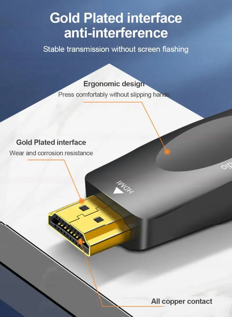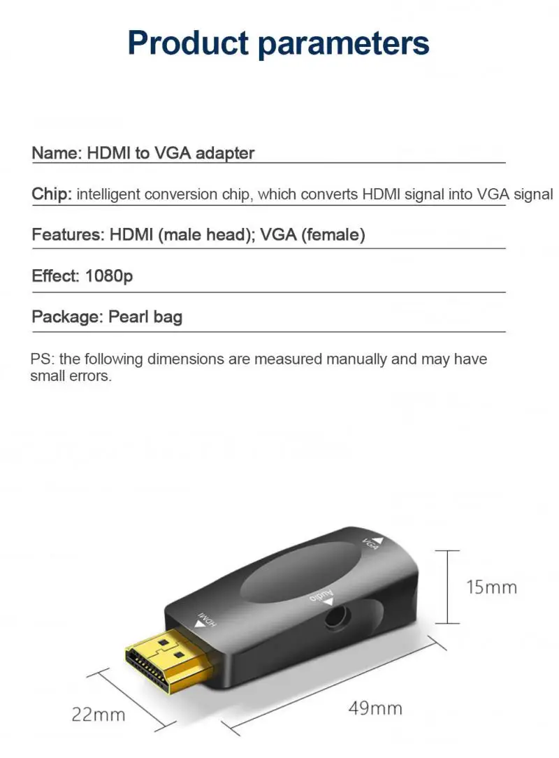 1. Этот продукт представляет собой портативный цифро-аналоговый преобразователь, который может быть преобразован в аудио и видео выход VGA путем определения входного сигнала высокой четкости в соответствии со стандартом.